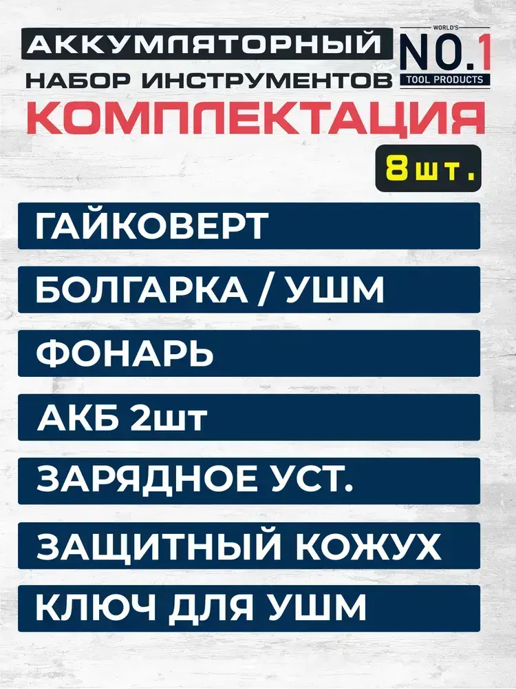 Набор аккумуляторных инструментов 3в1 Гайковерт / Винтоверт , УШМ / Болгарка , Фонарь Бесщеточный