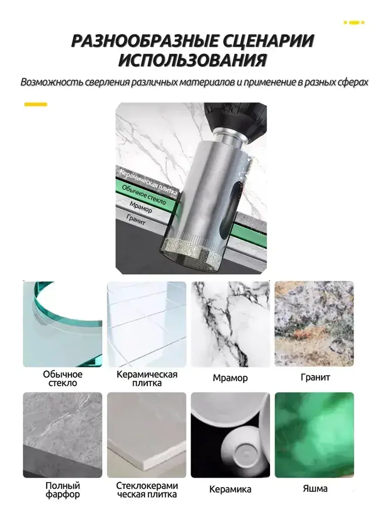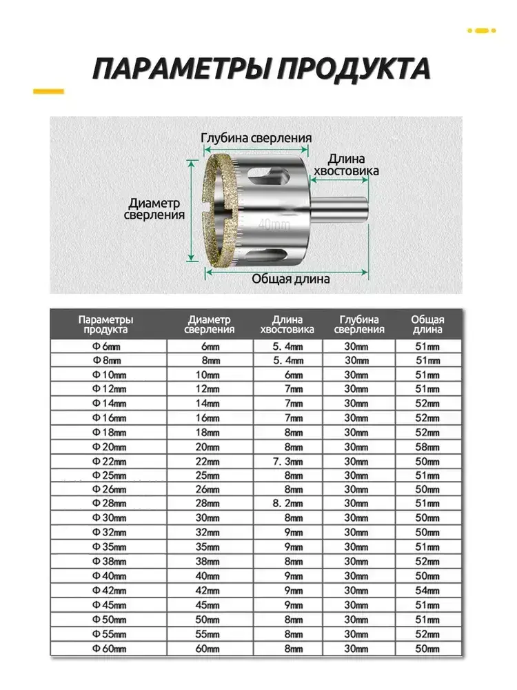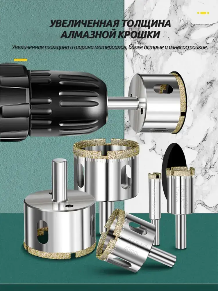Набор алмазных коронок 20 шт. для керамики, стекла, керамогранита, мрамора / 3-50 мм