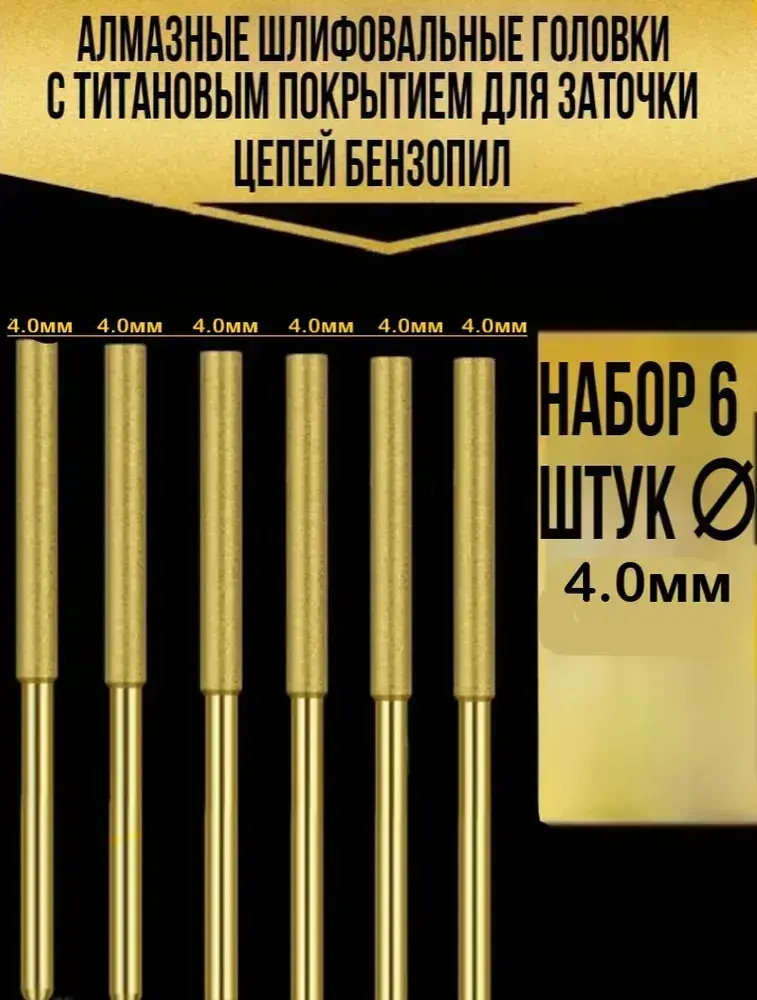 Набор алмазных шлифовальных головок 4 мм -6 шт для заточки цепей бензиновых и электропил.