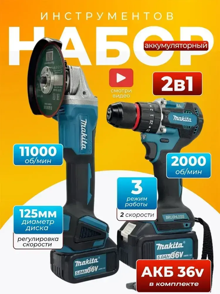 Набор бесщеточных электроинструментов (без кейса для переноски)