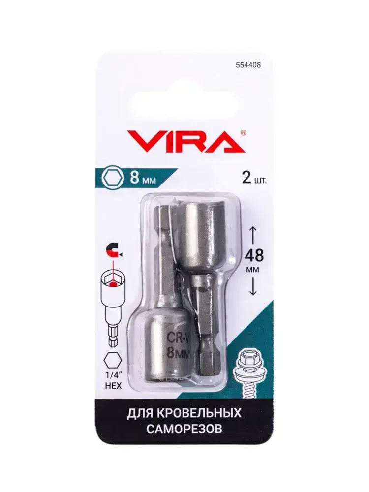 Набор бит для кровельных саморезов 8 мм 2 шт VIRA