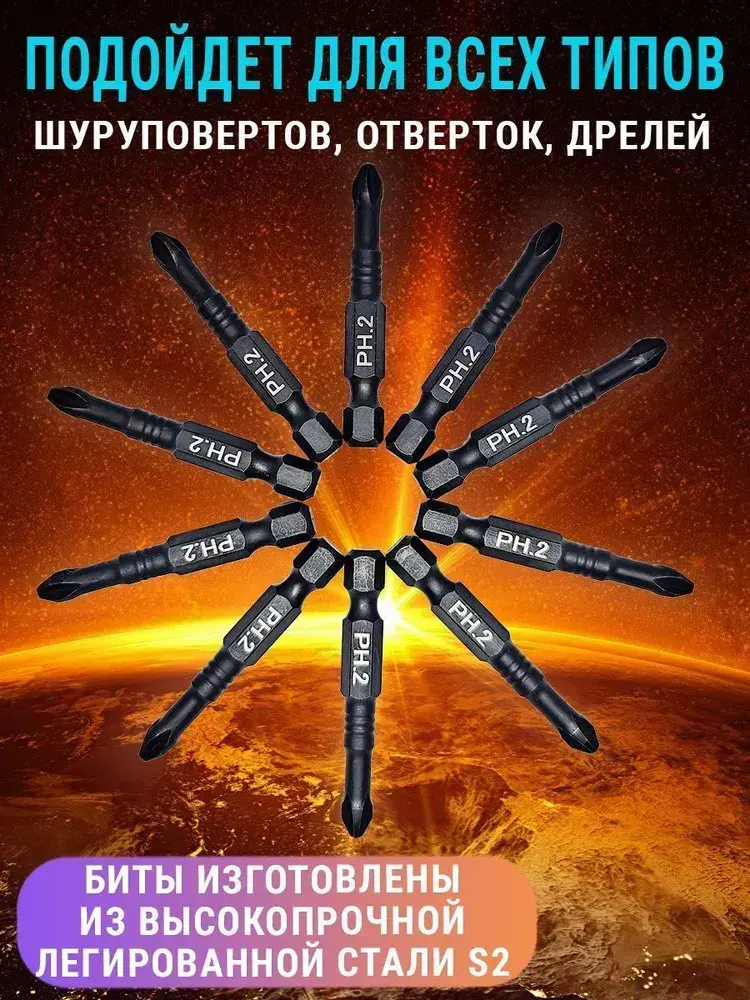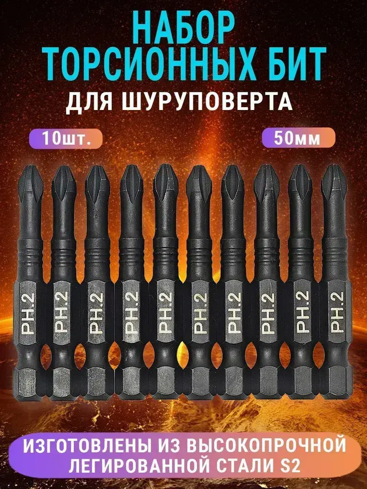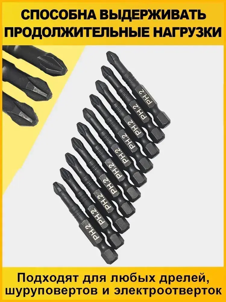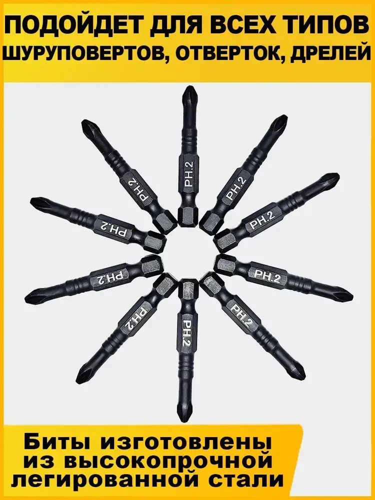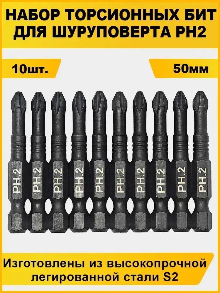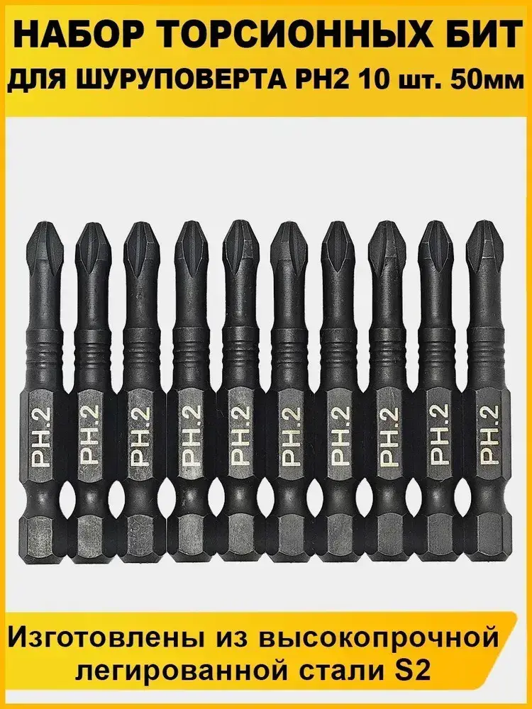 Набор бит для шуруповерта 50мм PH2 10шт AIDELIFE