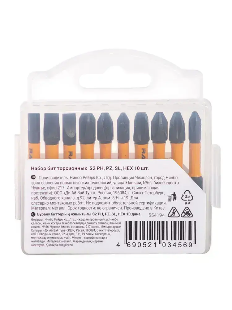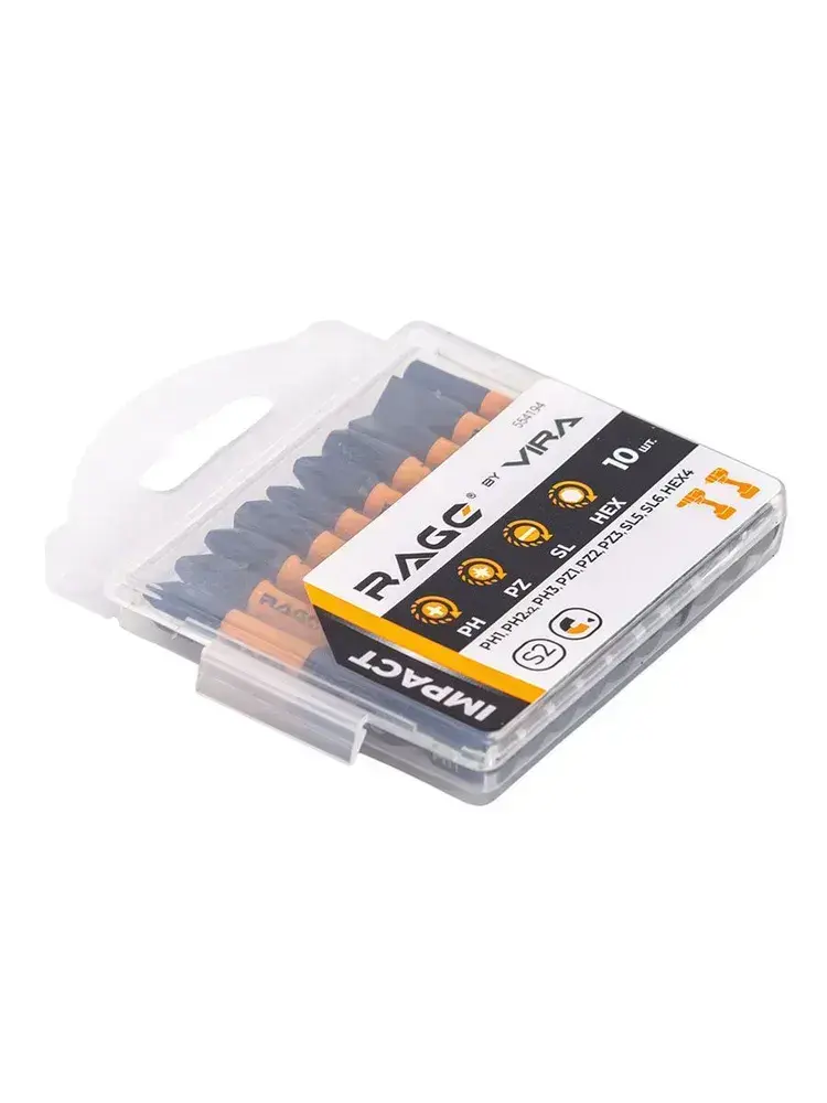 Набор бит торсионных IMPACT S2 PH PZ SL HEX x 50 мм 10 шт RAGE by VIRA