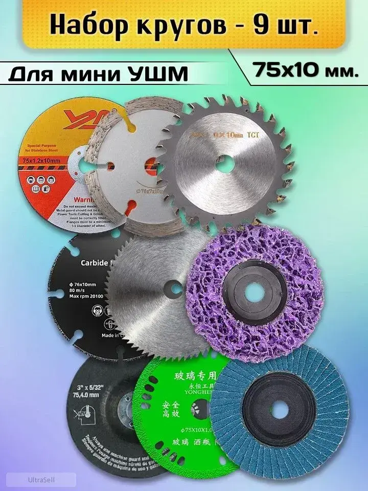 Набор дисков для мини УШМ, 9 шт. (75 / 76х10 мм)