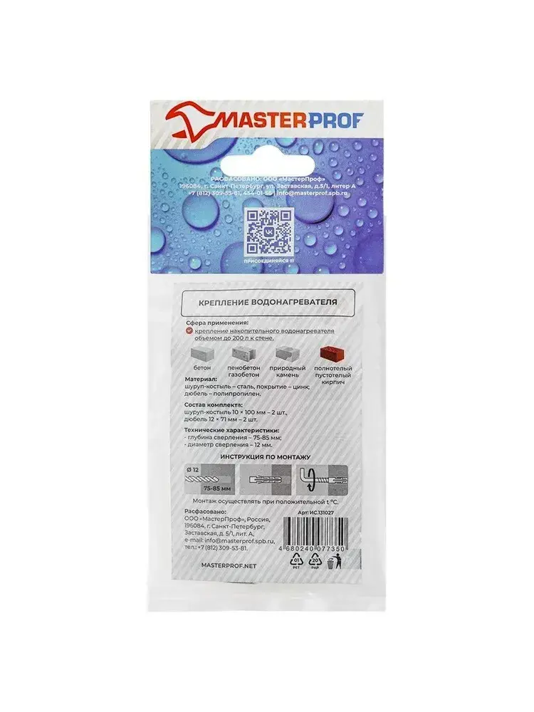 Набор для крепления водонагревателя (бойлера) до 200 л универсальный (шуруп - костыль 10 х 100, 2 шт.),