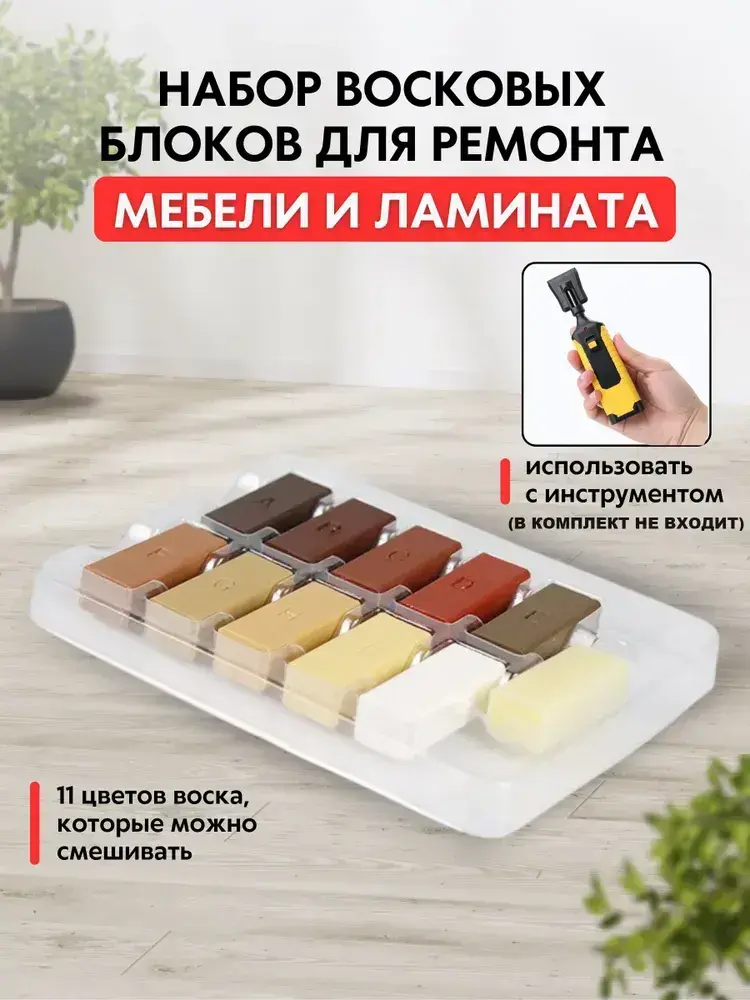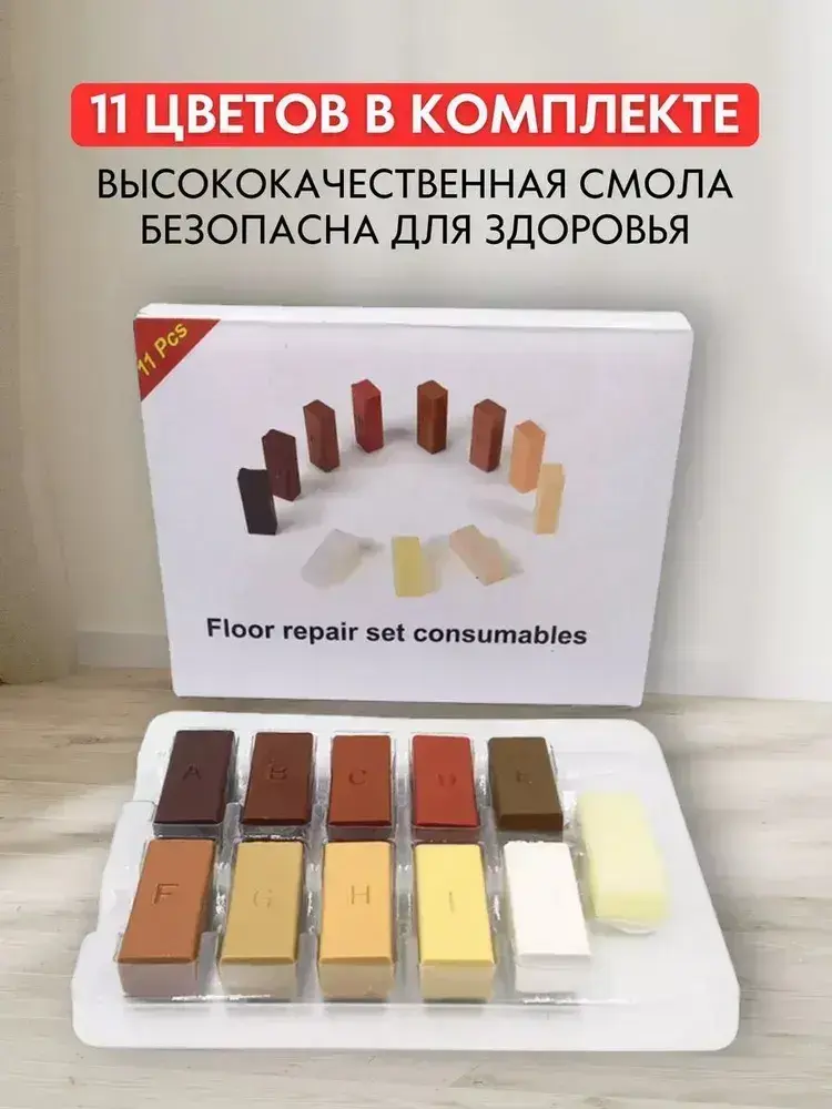 набор для ремонта ламината керамической, гранитной, мраморной плитки и фарфора. Набор для реставрации сколов мебели 11 цветов (теплые тона).