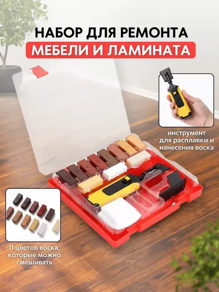 Набор для ремонта ламината, набор для реставрации мебели, для ремонта плитки, воск мебельный для реставрации. 11 цветов, теплые тона.