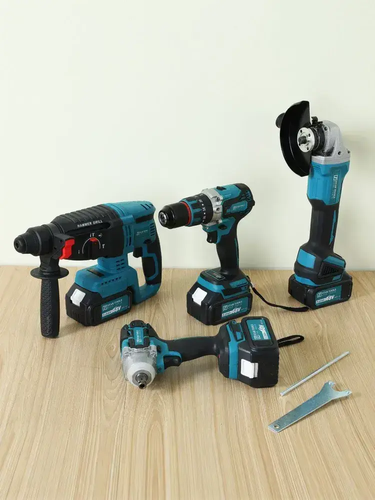Набор электроинструментов 4В1 УШМ(Болгарка), Шуруповерт(Дрель), Гайковерт, Перфоратор Кейс 4АКБ