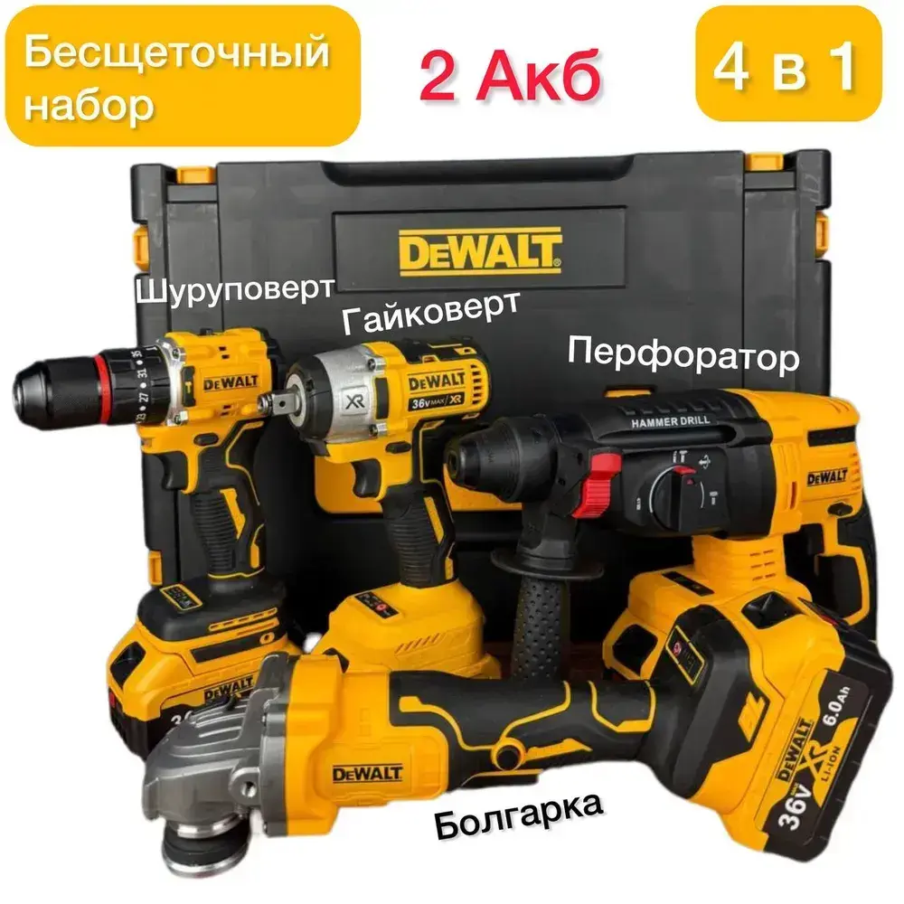 Набор электроинструментов аккумуляторных 4в1 /болгарка, гайковерт, перфоратор, дрель шуруповерт Dewalt