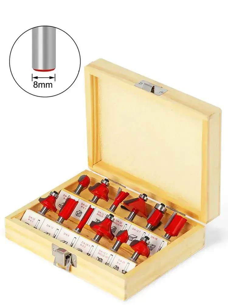 Набор фрез по дереву (хвостовик 8 мм, 12 предметов) с коробкой