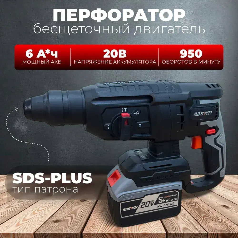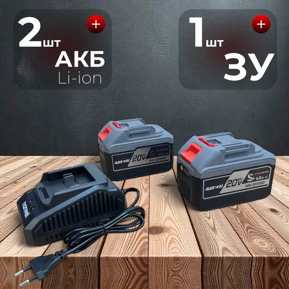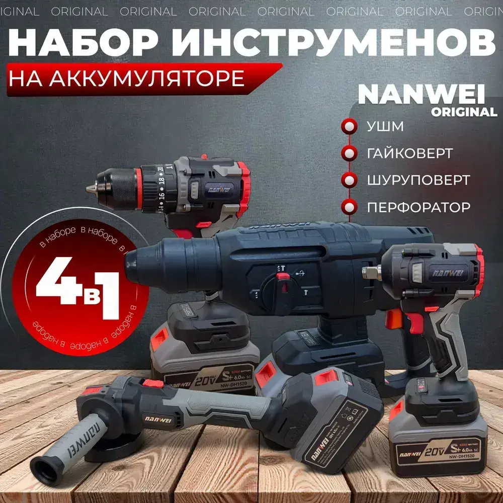 Набор инструментов Nanwei 4в1: (Перфоратор, Шуруповерт, Гайковерт, УШМ, 2АКБ и ЗУ)