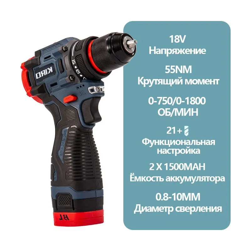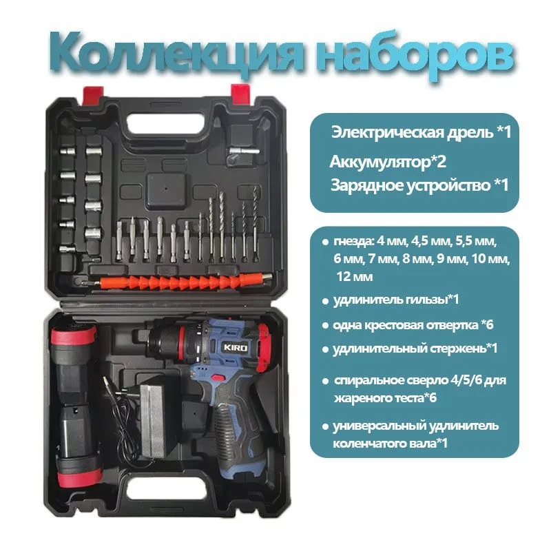 Набор инструментов с шуруповертом, 2 АКБ, кейс для хранения, шуруповерт аккумуляторный 18 V, с насадками для профессионального и домашнего использования, дрель электрическая