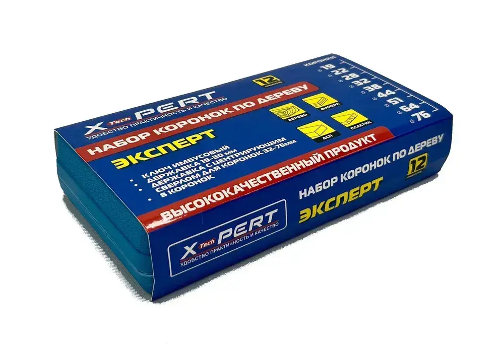 Набор коронок по дереву, 12 предметов, 19-76мм, Xpert