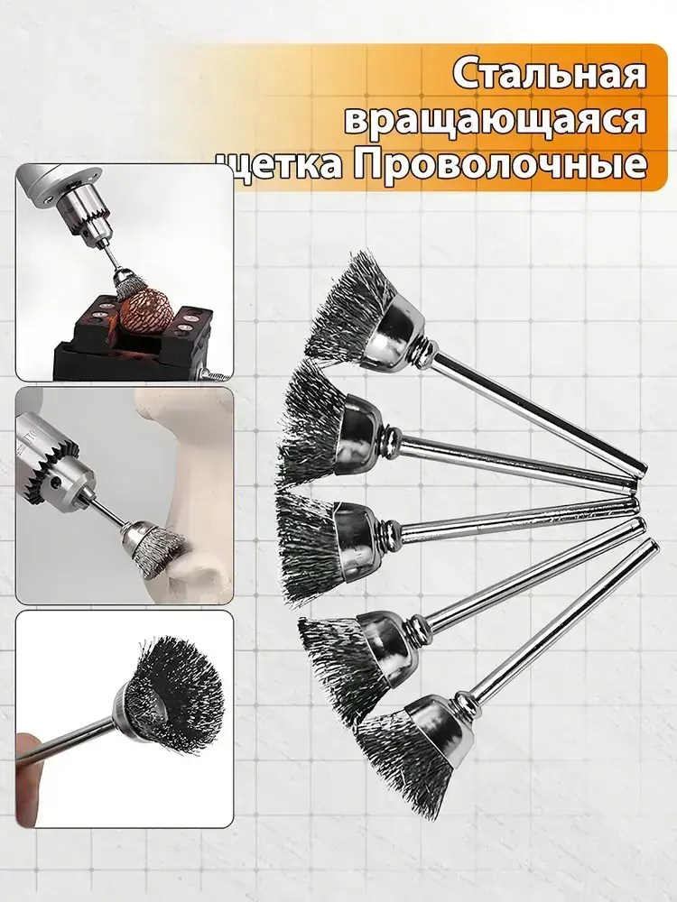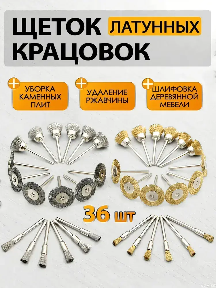 Набор металлических щеток-крацовок для дрели и шуруповёрта 36 шт - для удаления ржавчины и полировки поверхностей