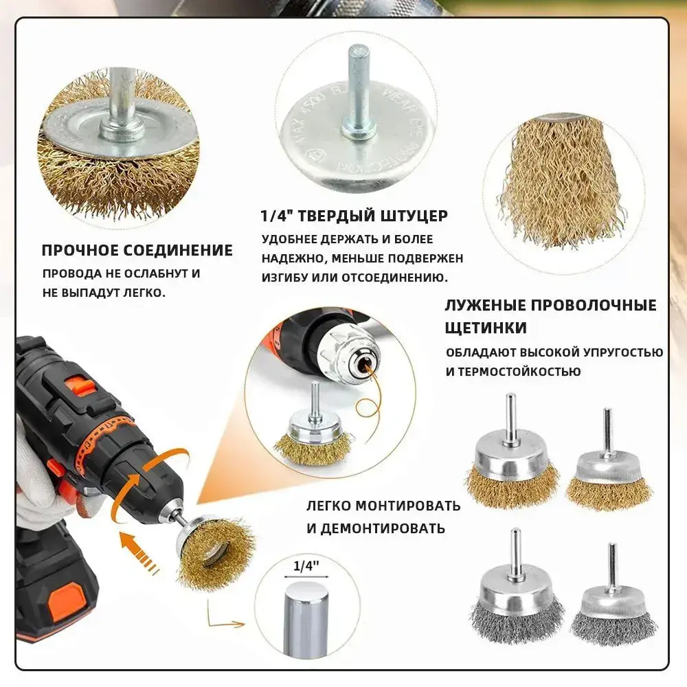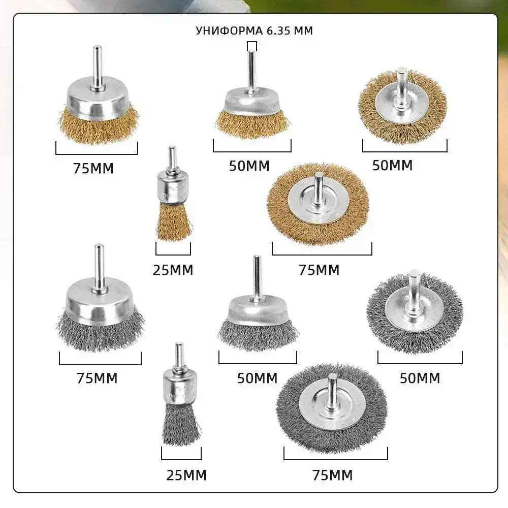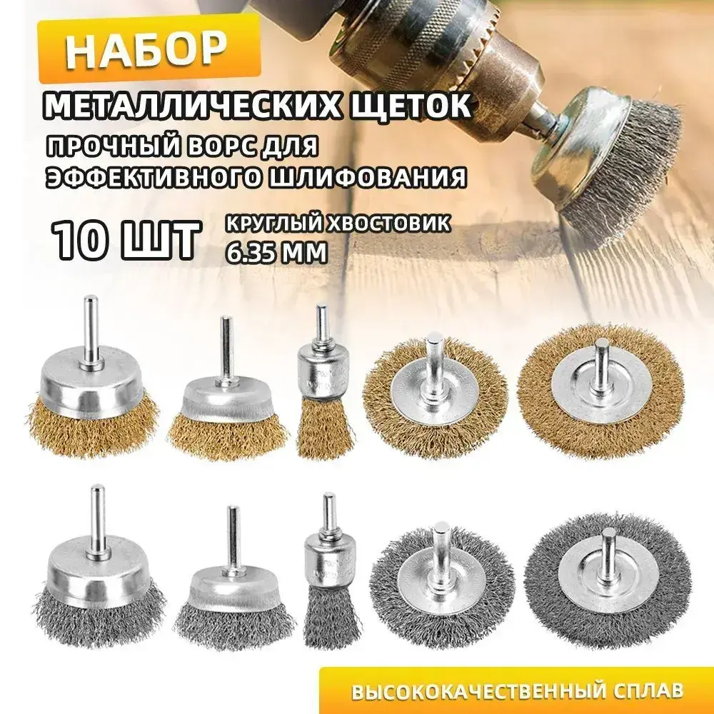 Набор металлических щеток-крацовок для дрели и шуруповёрта / Для удаления ржавчины 10 шт.