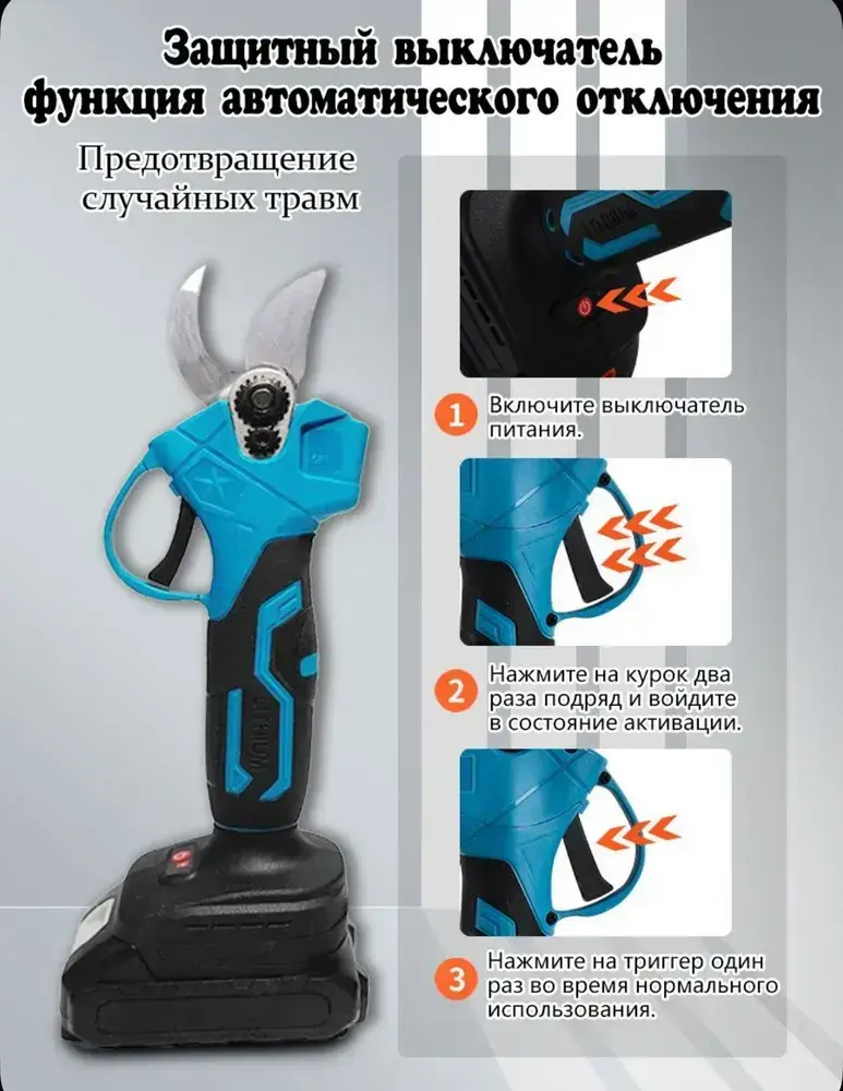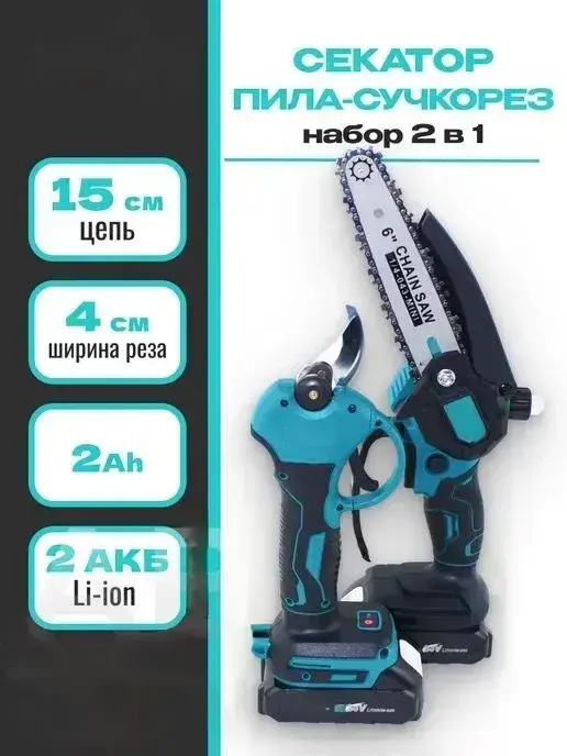 Набор садовых инструментов с удлинителем секатор и пила аккумуляторные, 2в1, 2 АКБ