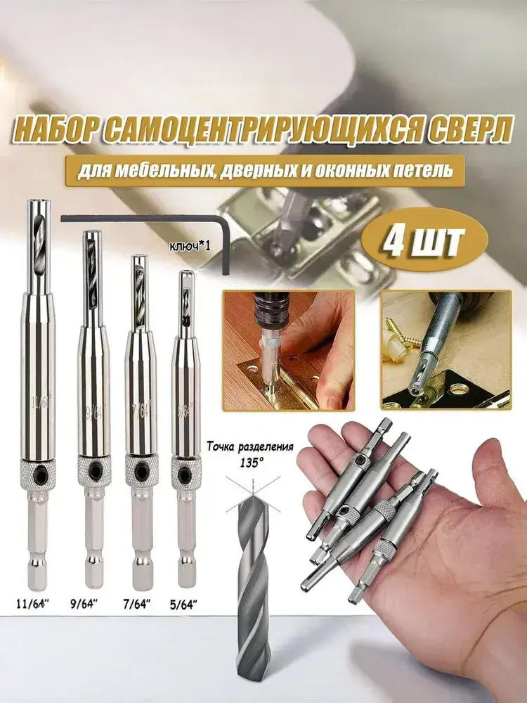 Набор самоцентрирующихся сверл по дереву для мебельных, дверных и оконных петель с шестигранным хвостовиком для шуруповерта и дрели, центровочное мебельное сверло для петли инструменты деревообработки