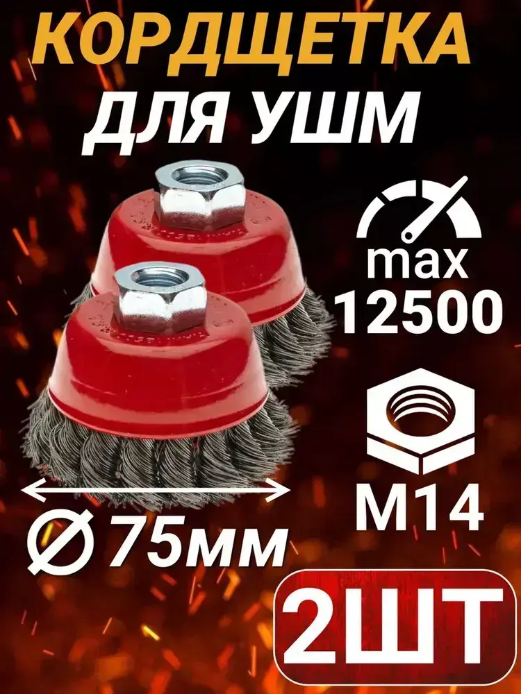 Набор щеток металлических для УШМ 75мм 2шт, стальная