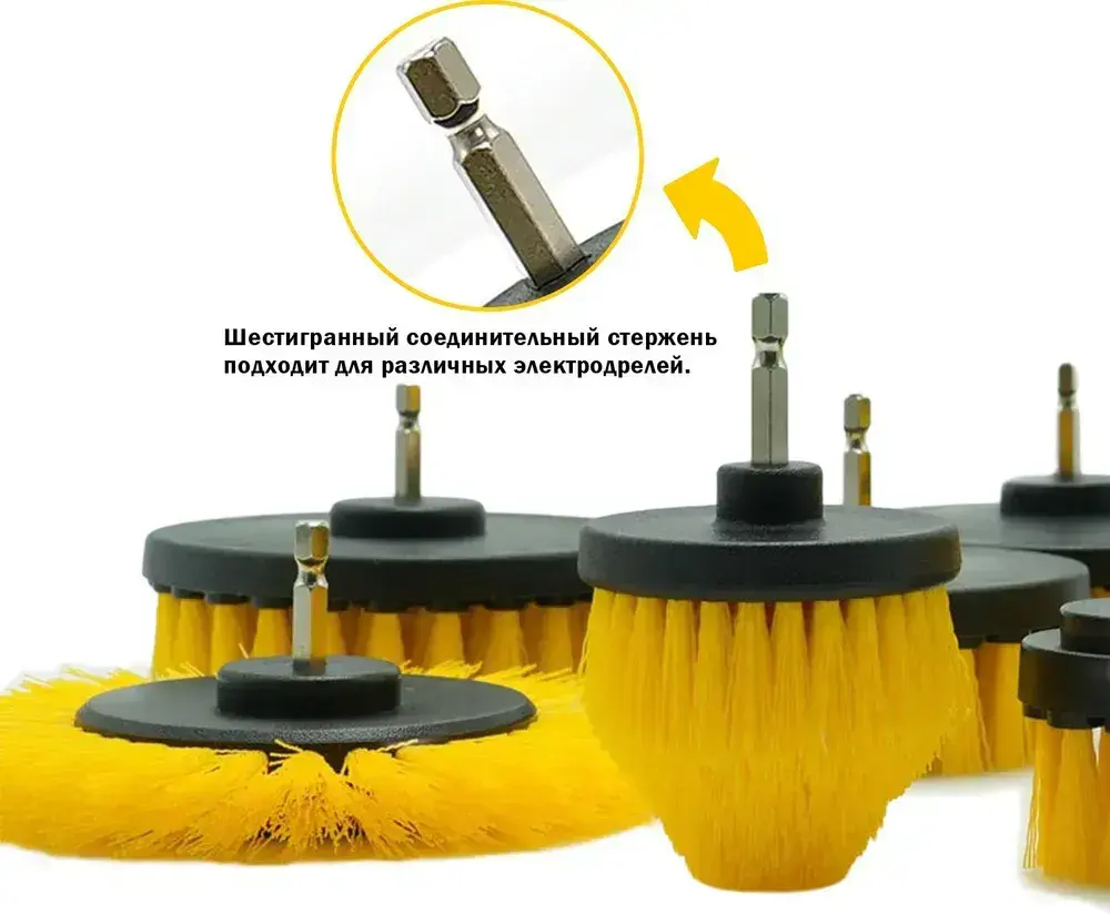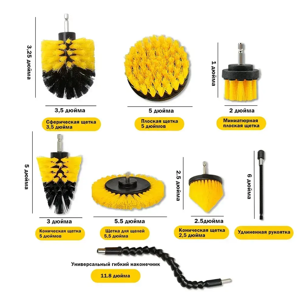 Набор щеток насадок на дрель, щетки для шуруповерта, для быстрой чистки и мойки поверхностей, детейлинг для авто, 8 предметов, средняя жесткость