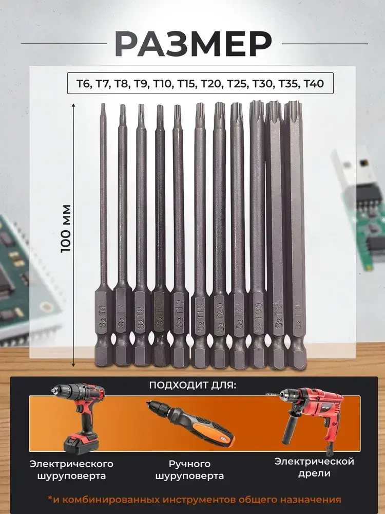 Набор шестигранных бит для шуруповерта 11шт, 100мм