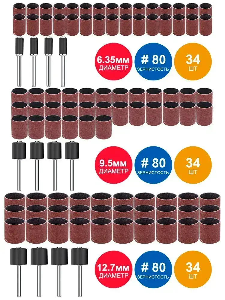 Набор шлифовальных барабанов для гравера XCAN с оправками, 102 предмета