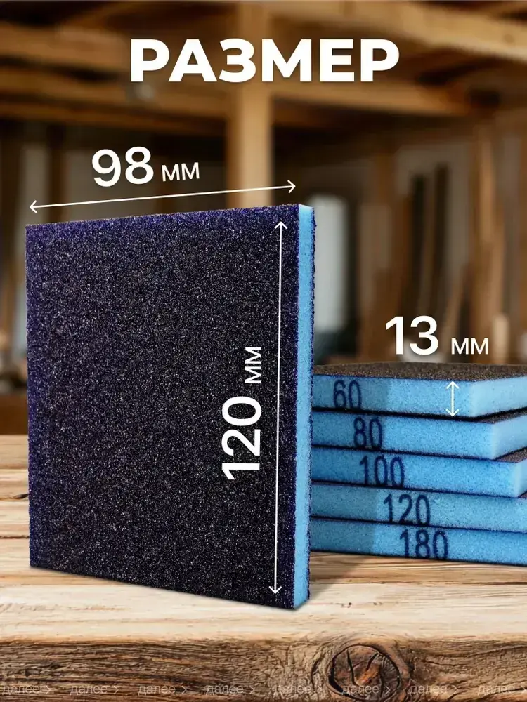Набор шлифовальных губок P60 P80 Р100 P120 Р180 двусторонняя 120х98х13 из 5 шт., Шлифовальная губка водостойкая