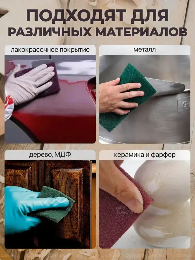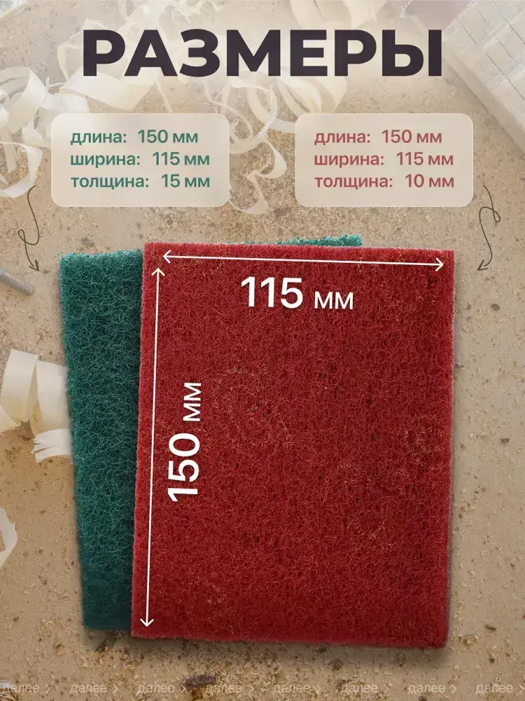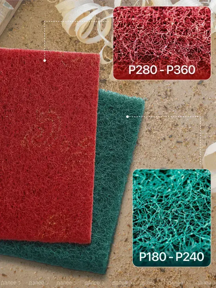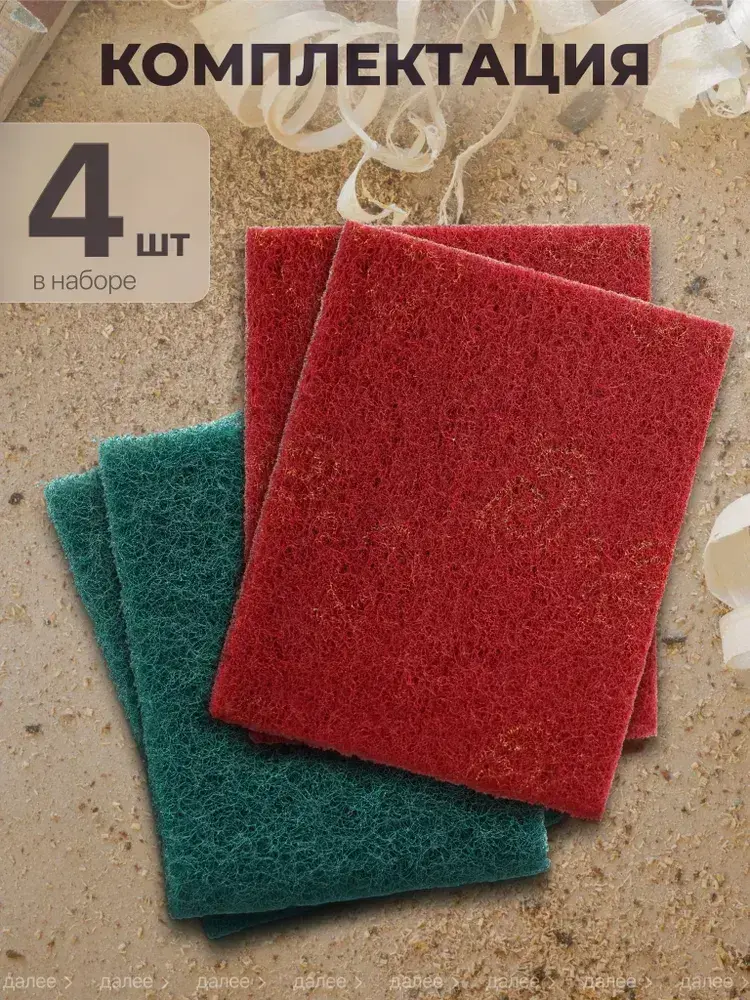 Набор шлифовальный войлок, скотч брайт, Р180-240, Р280-360 двусторонняя 150х115 из 4 шт., Шлифовальная губка водостойкая