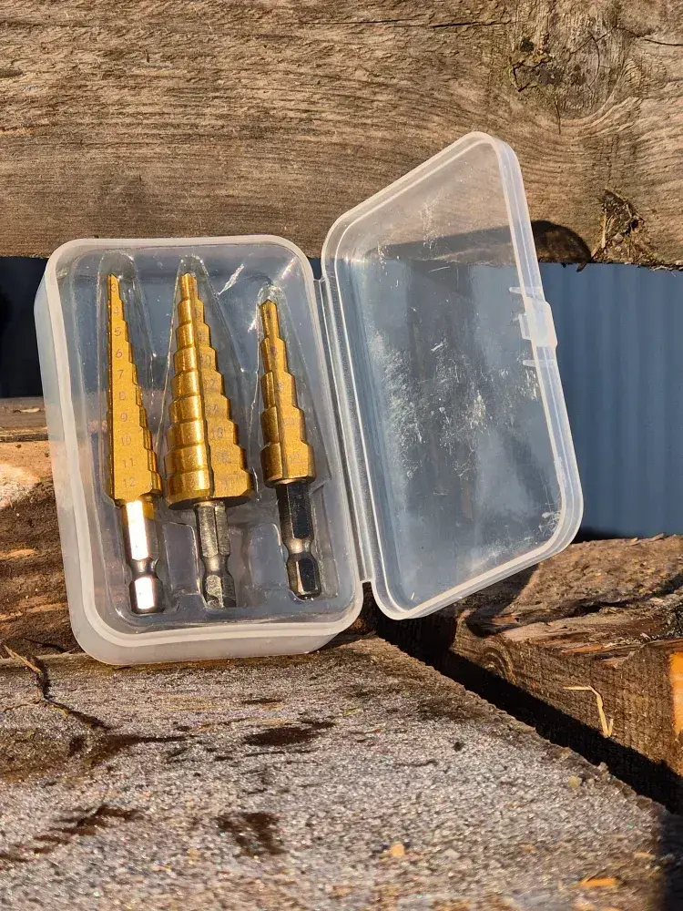 Набор ступенчато конусных сверл по металлу и дереву с титановым покрытием 3шт (3-12 мм, 4-12мм, 4-20мм) / Сверло ступенчатое набор 3 в 1
