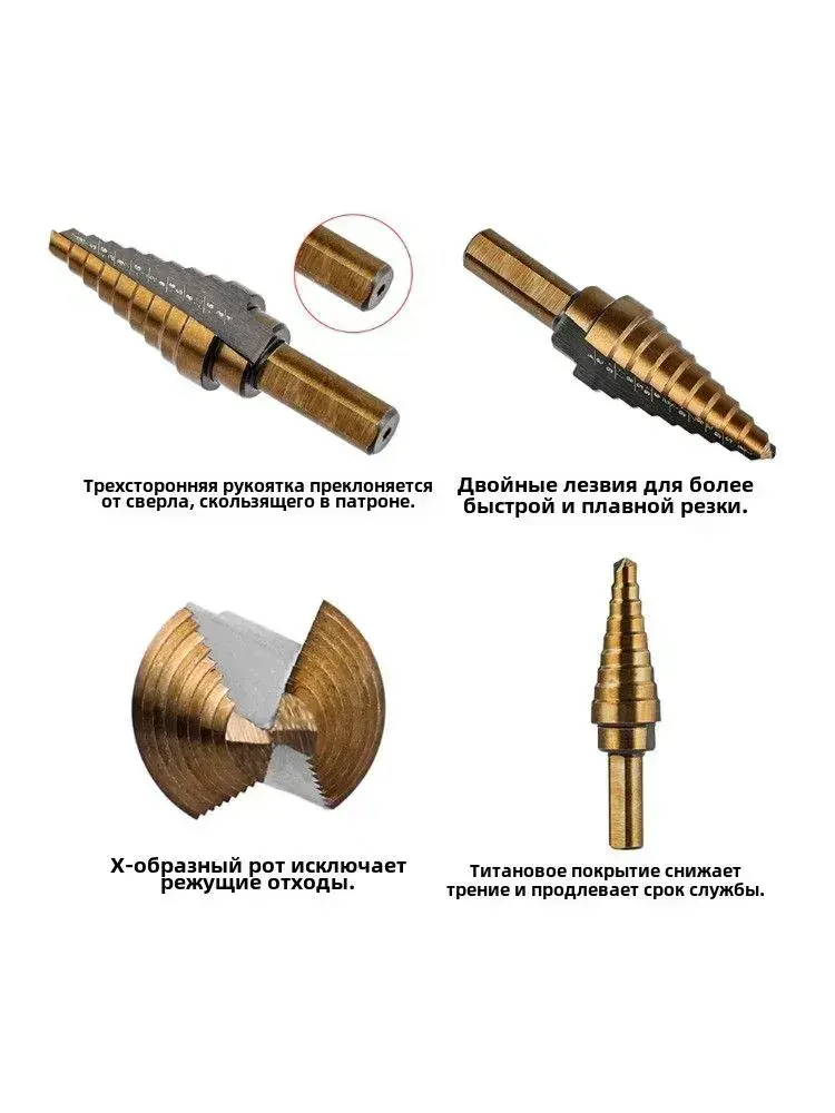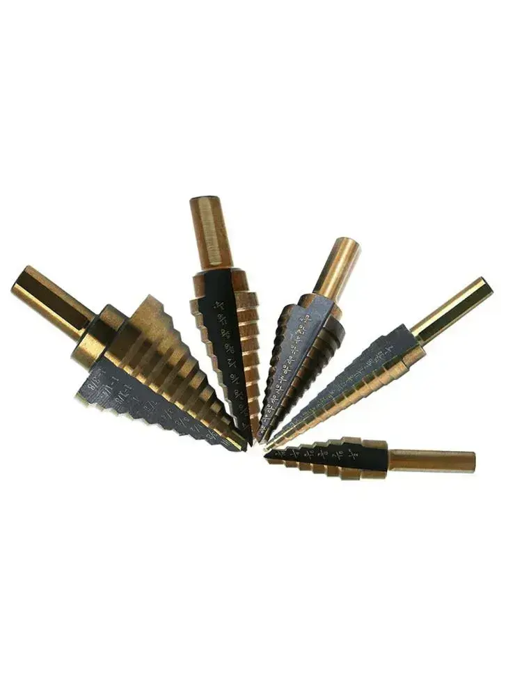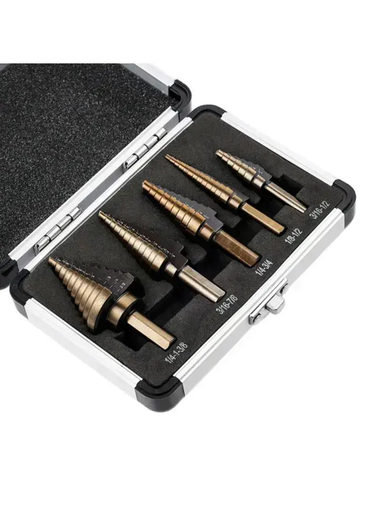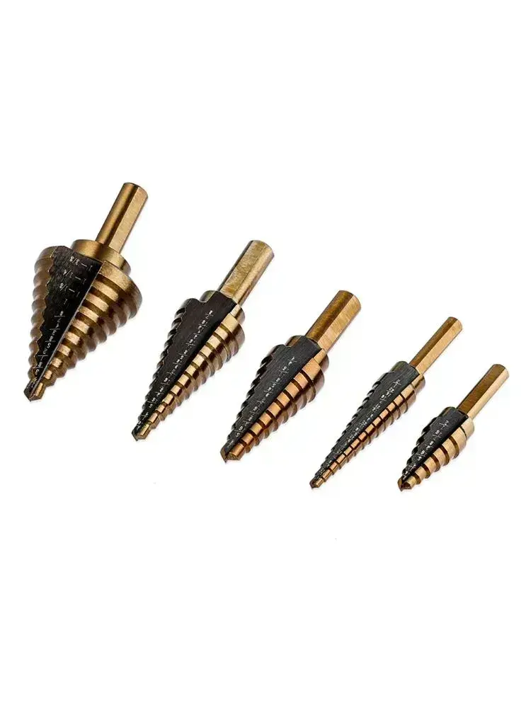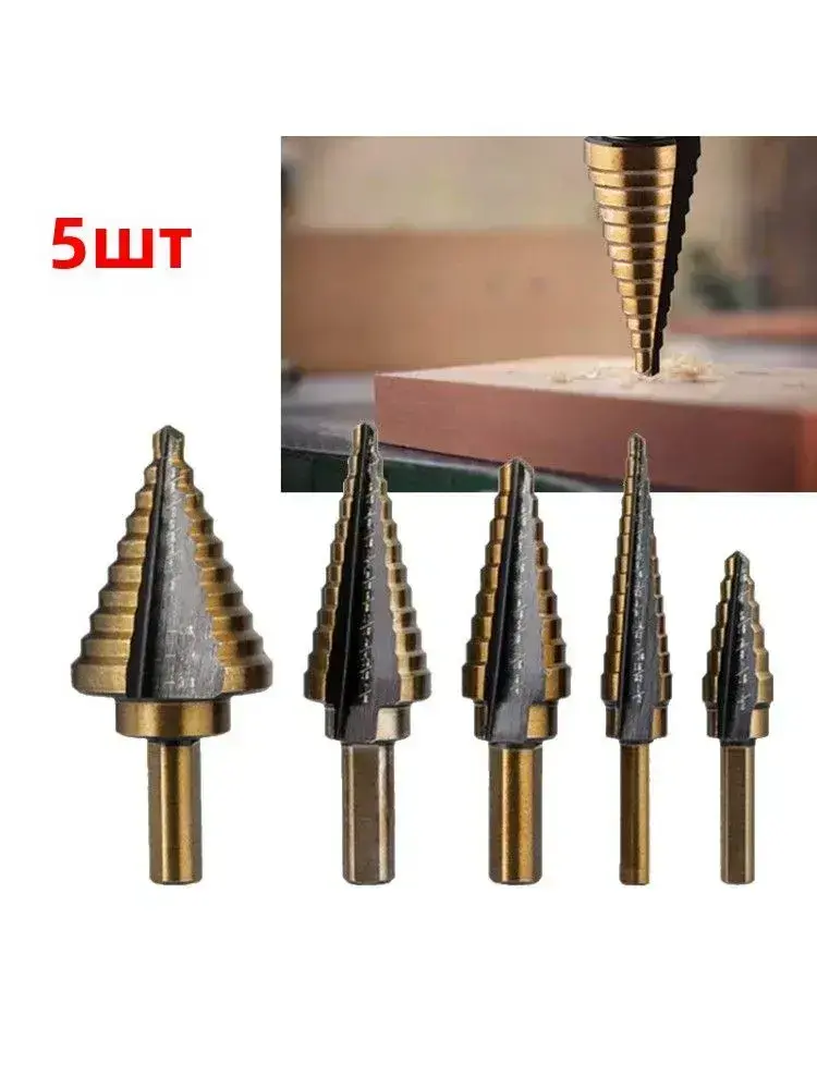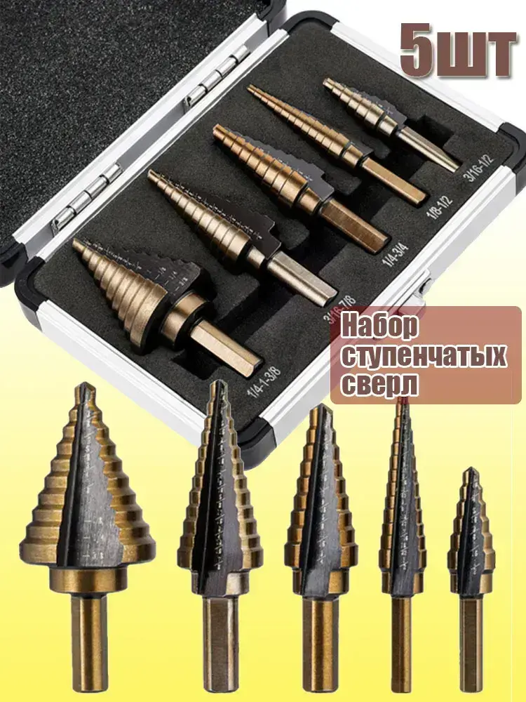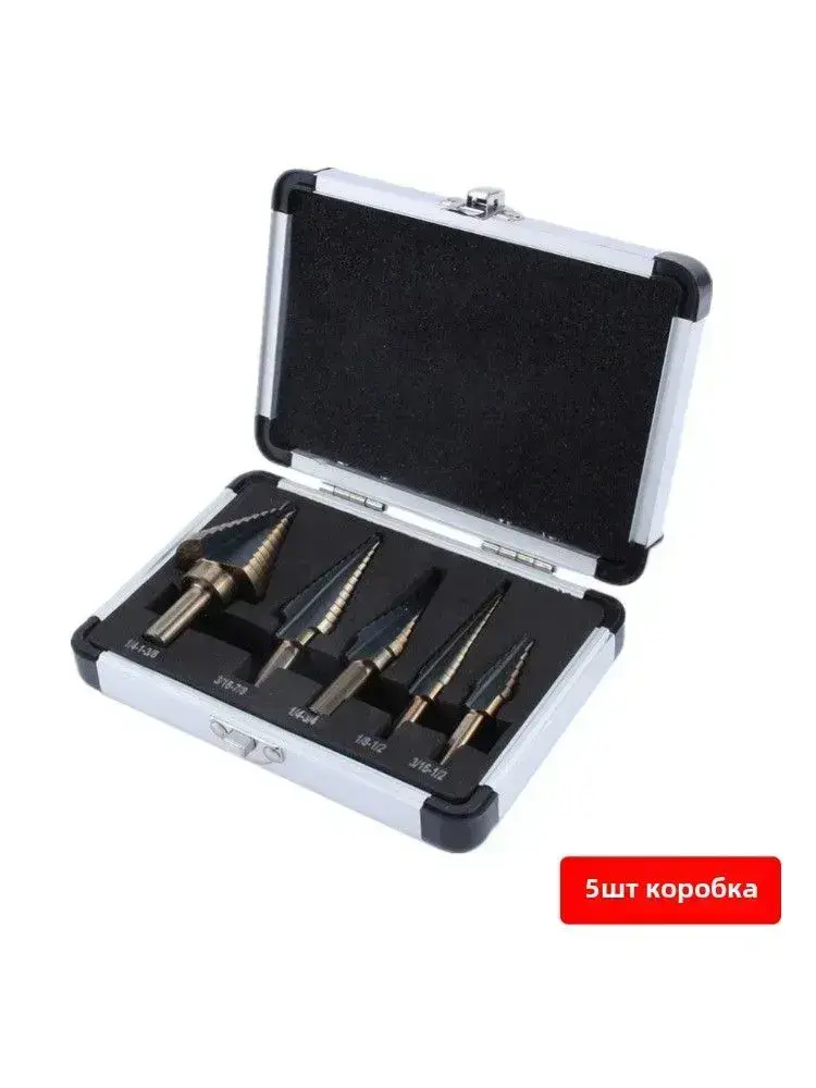 Набор ступенчатых сверл по металлу с титановым покрытием в кейсе 5шт, трехгранный хвостовик/сверла по металлу