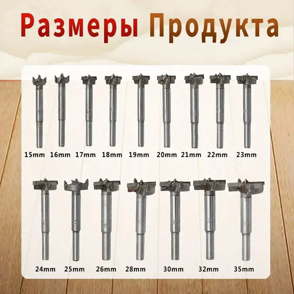 Набор сверел Форстнера по дереву, 15-35 мм, 16шт
