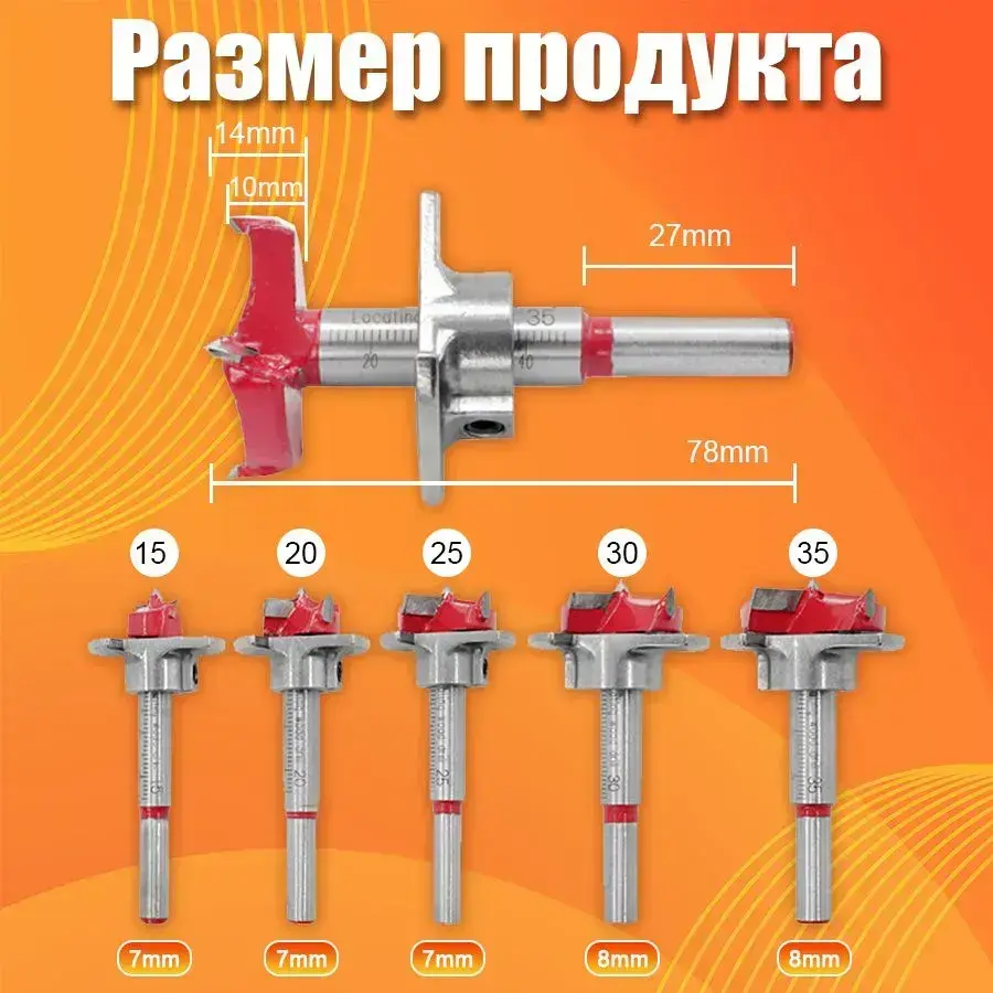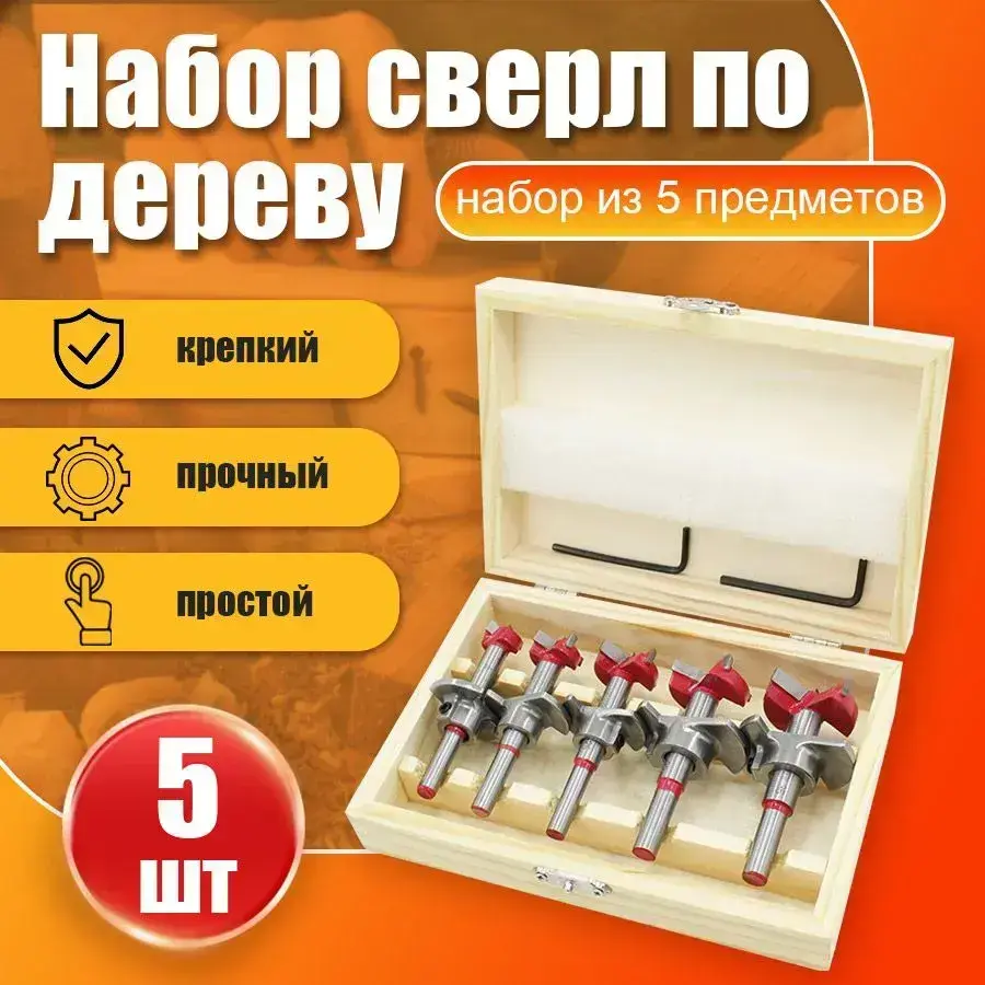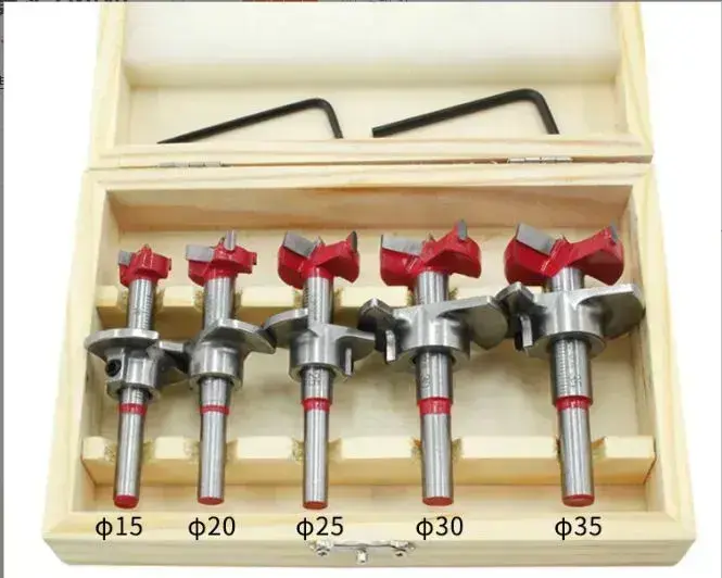 Набор сверл Форстнера по дереву, 15-20-25-30-35 мм, 5 шт с ограничителем