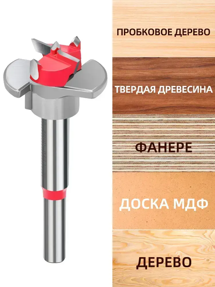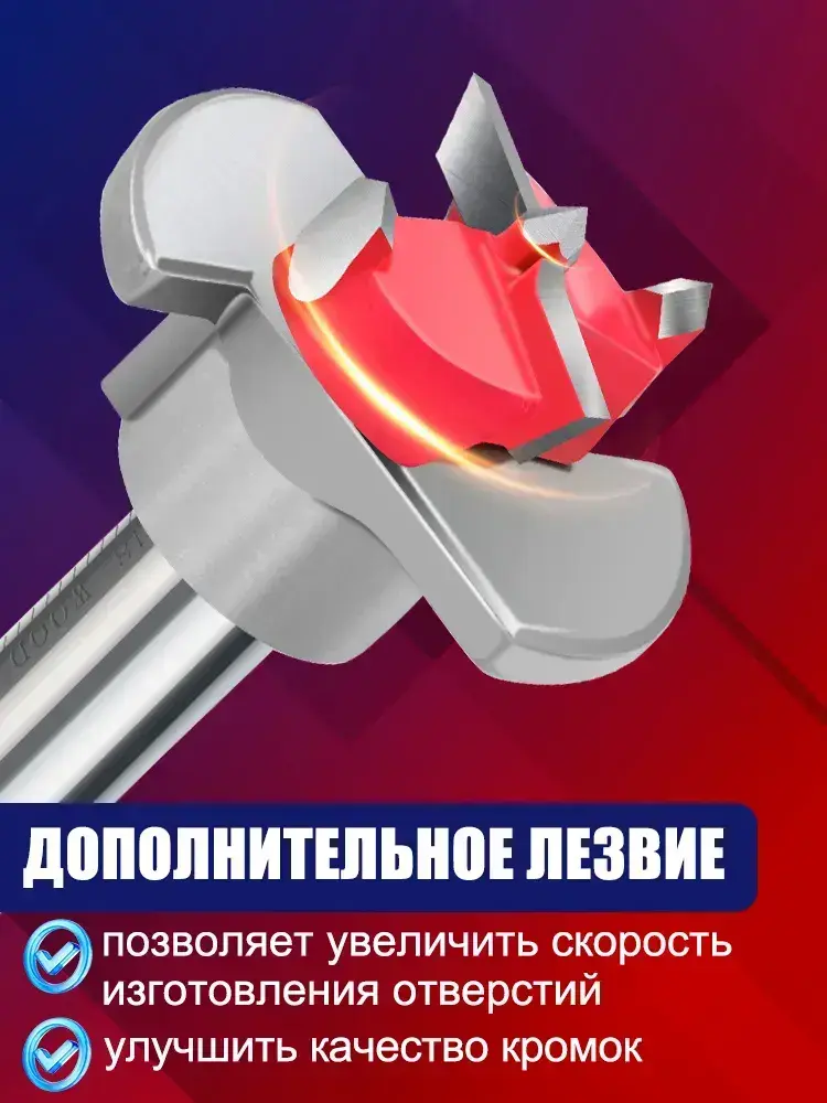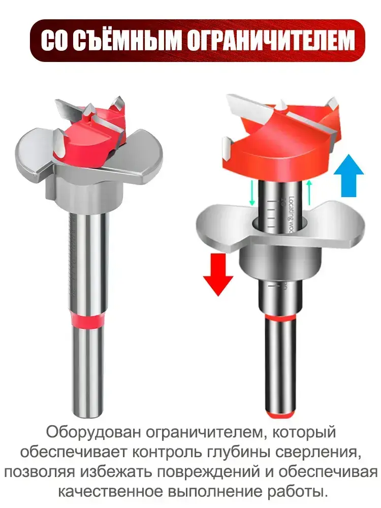 Набор сверл Форстнера по дереву , 15, 20, 25, 30, 35 мм, с ограничителем, 5шт.