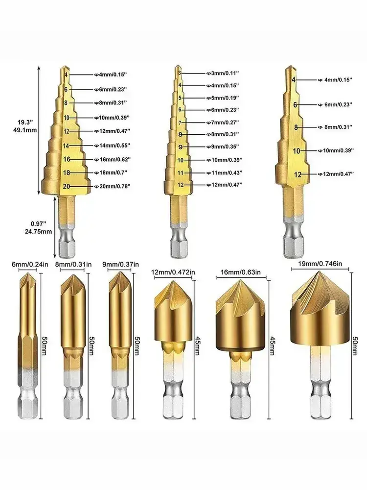 Набор сверл из 11 частей, сверло ступенчатое по металлу