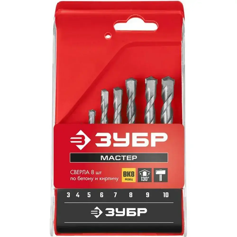 Набор сверл по бетону ЗУБР 8 шт, 3-4-5-6-7-8-9-10 мм