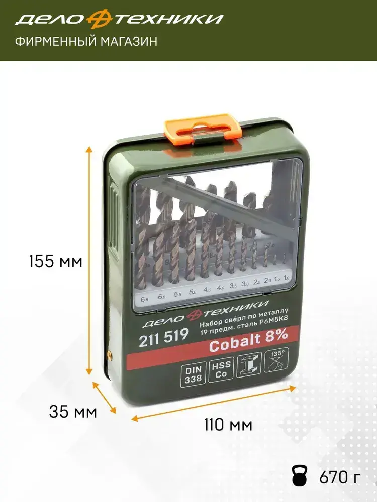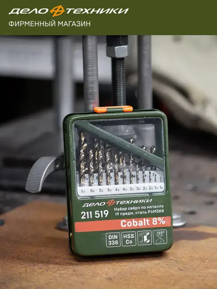 Набор сверл по металлу Cobalt 8% (d1.0 - 10 мм), 19 шт., Дело Техники, 211519
