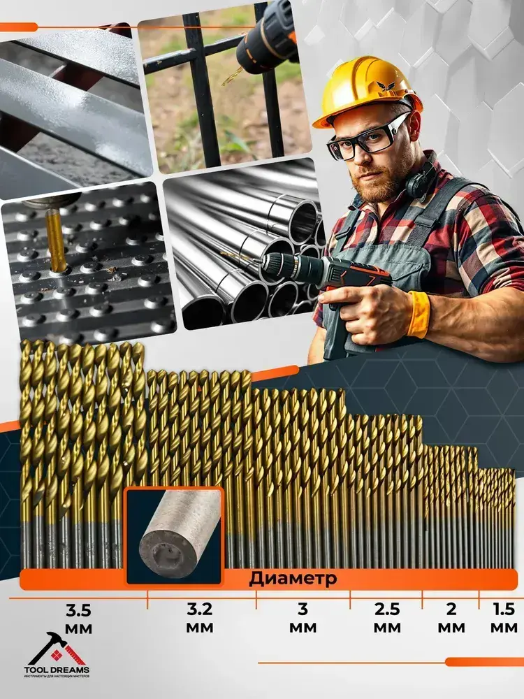 Набор сверл по металлу с титановым покрытием - 60 штук.