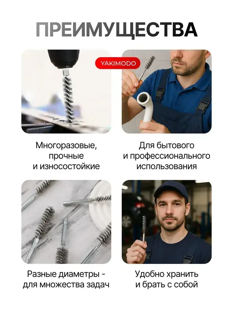 Набор сверл с проволочной щеткой для очистки отверстий от ржавчины, после нарезки резьбы и тормозных суппортов