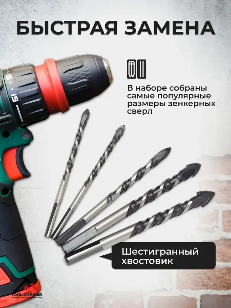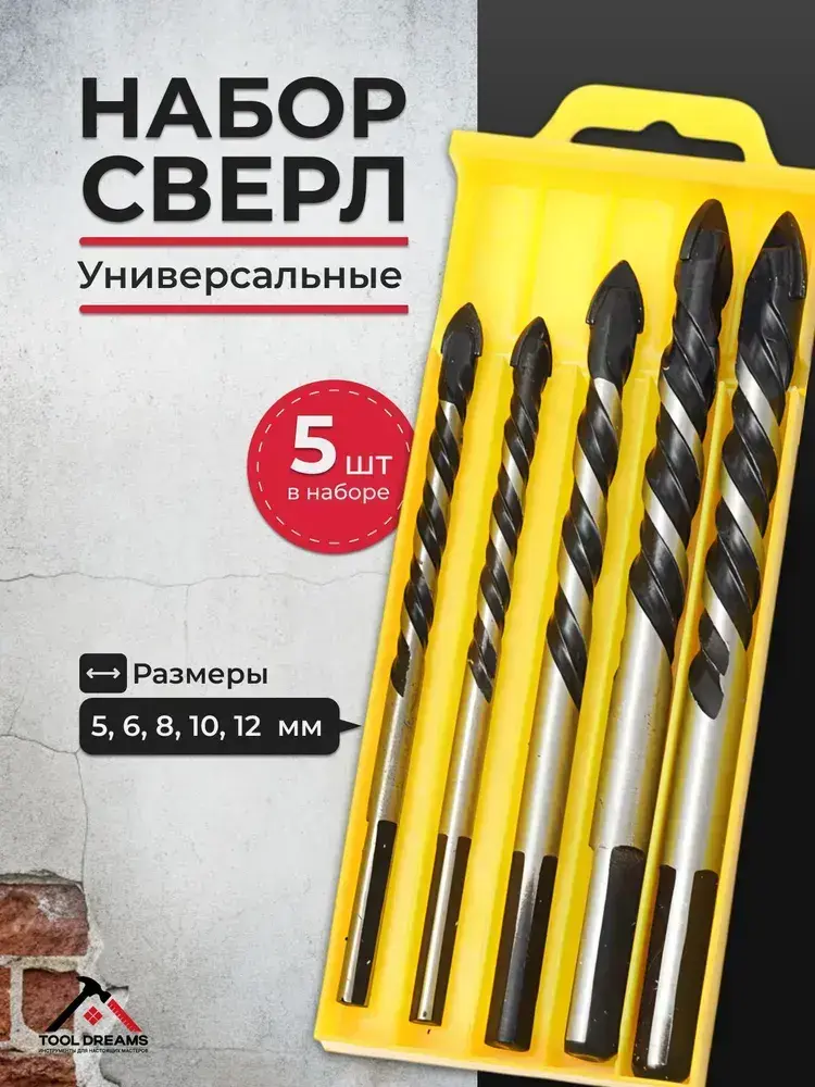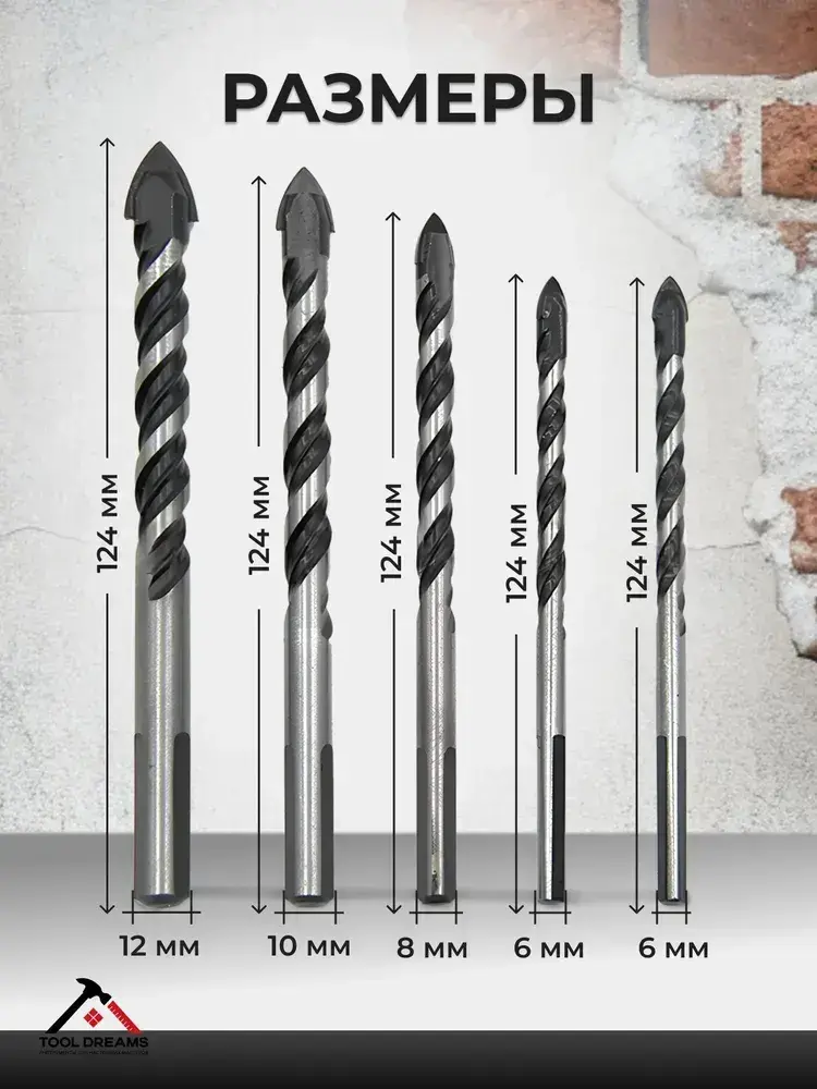 Набор свёрл 5 шт по стеклу , керамике , плитке Сверла для керамогранита и мрамора 6-12мм