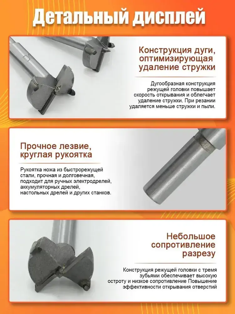 Набор свёрл Форстнера с карбидными вставками (15-35 мм, 16 предметов)
