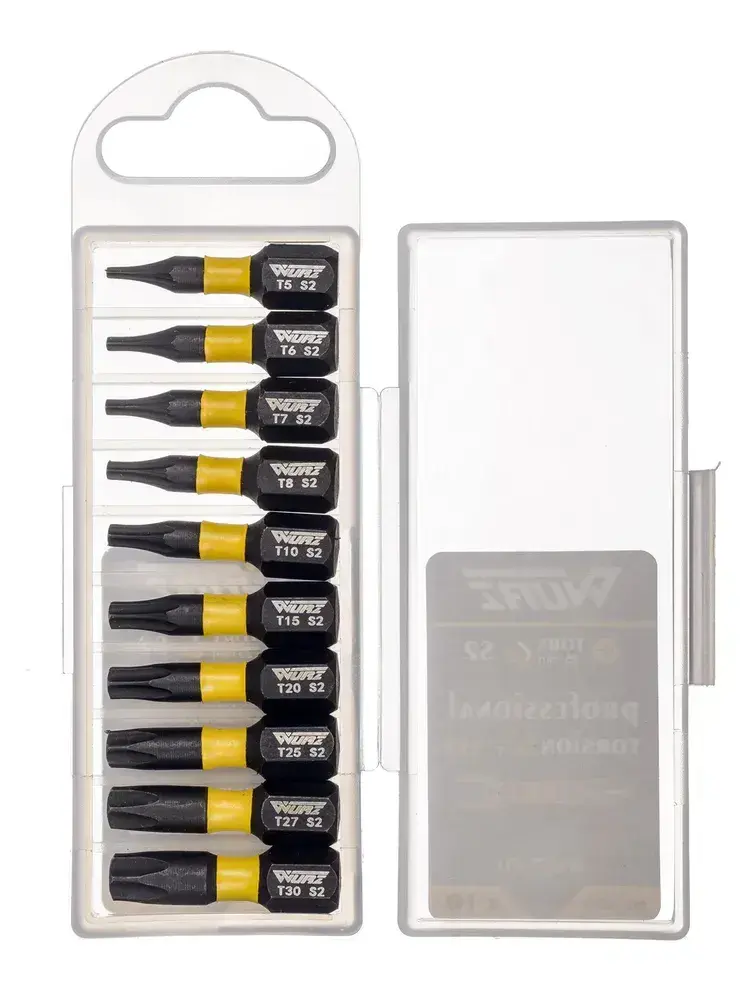 Набор торсионных намагниченных бит TORX 25мм S2 10 предметов WURZ 4230