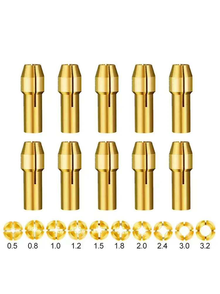 Набор цанговых патронов латунных 0,5-3,2мм, хвостовик 4,3 мм, 10 шт.