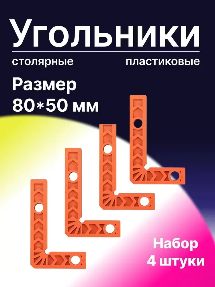 Набор угольников столярных, строительных 80х50 мм, 4 шт, пластиковые, линейка/угольник