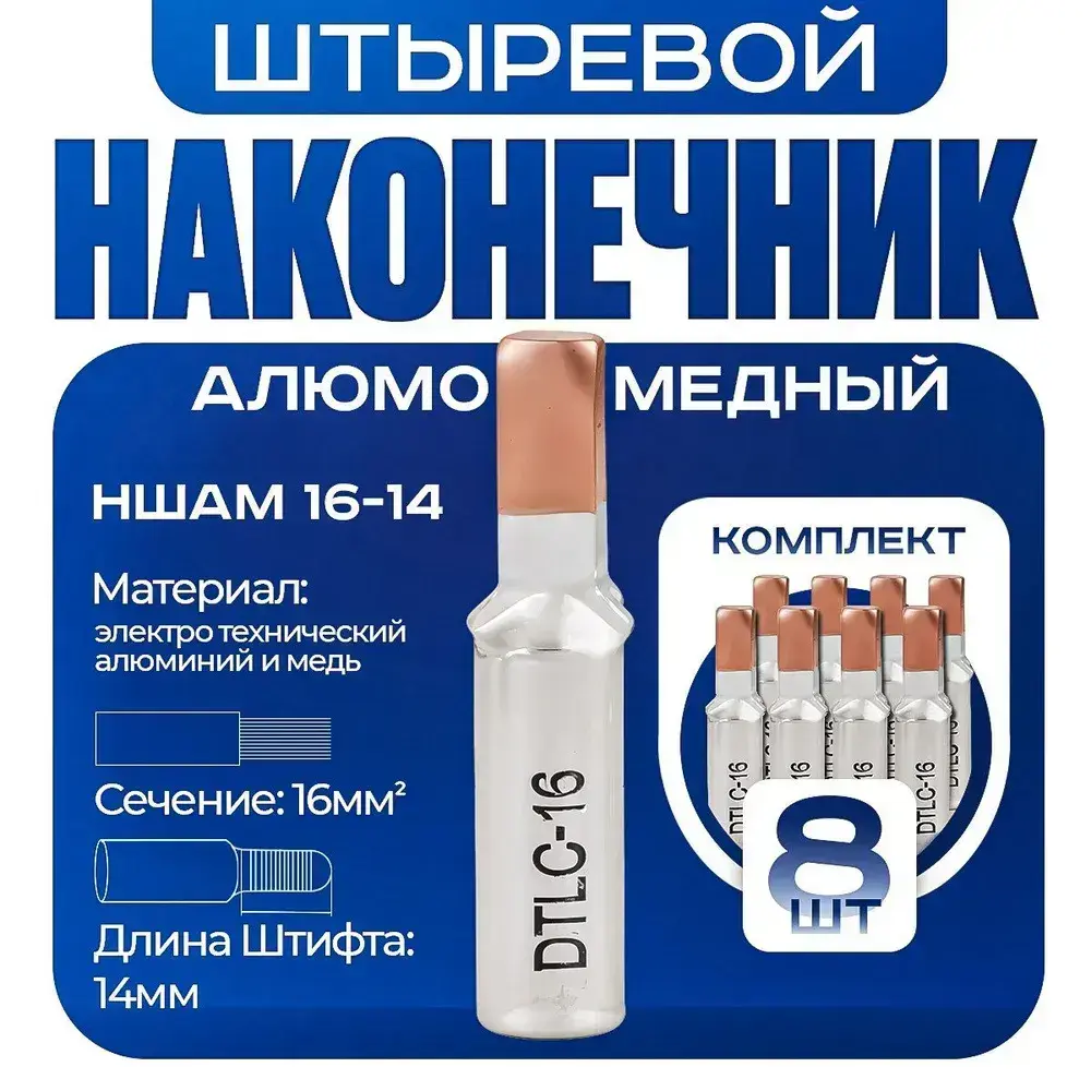 Наконечник НШАМ 16-14 штыревой алюмо-медный (8шт)