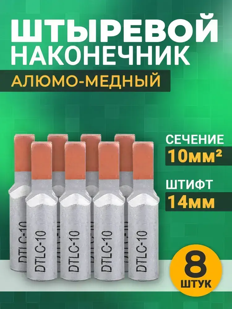 Наконечник штыревой (НШАМ 10-14) алюмо-медный, кабельный наконечник 10мм2 8шт.