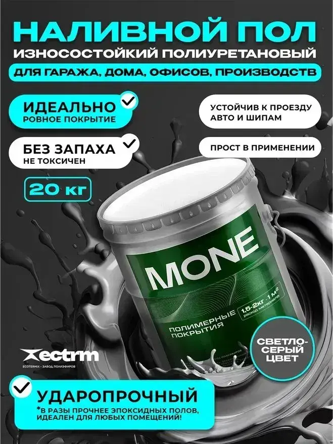 Наливной пол Экотермикс полиуретановое двухкомпонентное покрытие напольное, самовыравнивающийся на 8 м2 / стяжка пола цвет светло-серый 20 кг.
