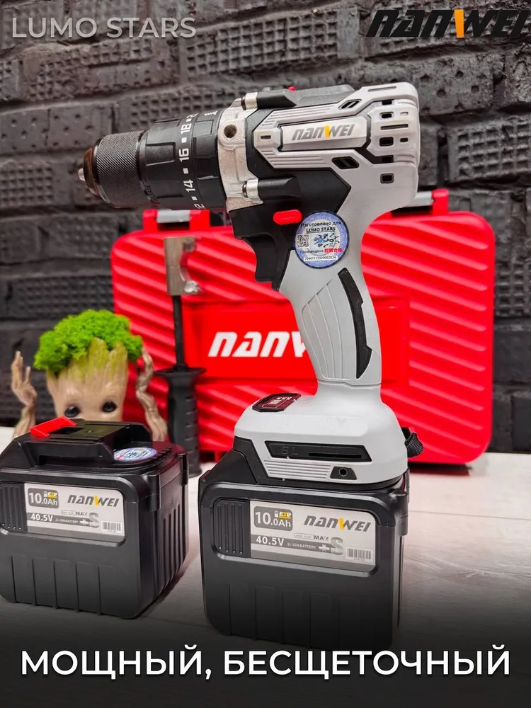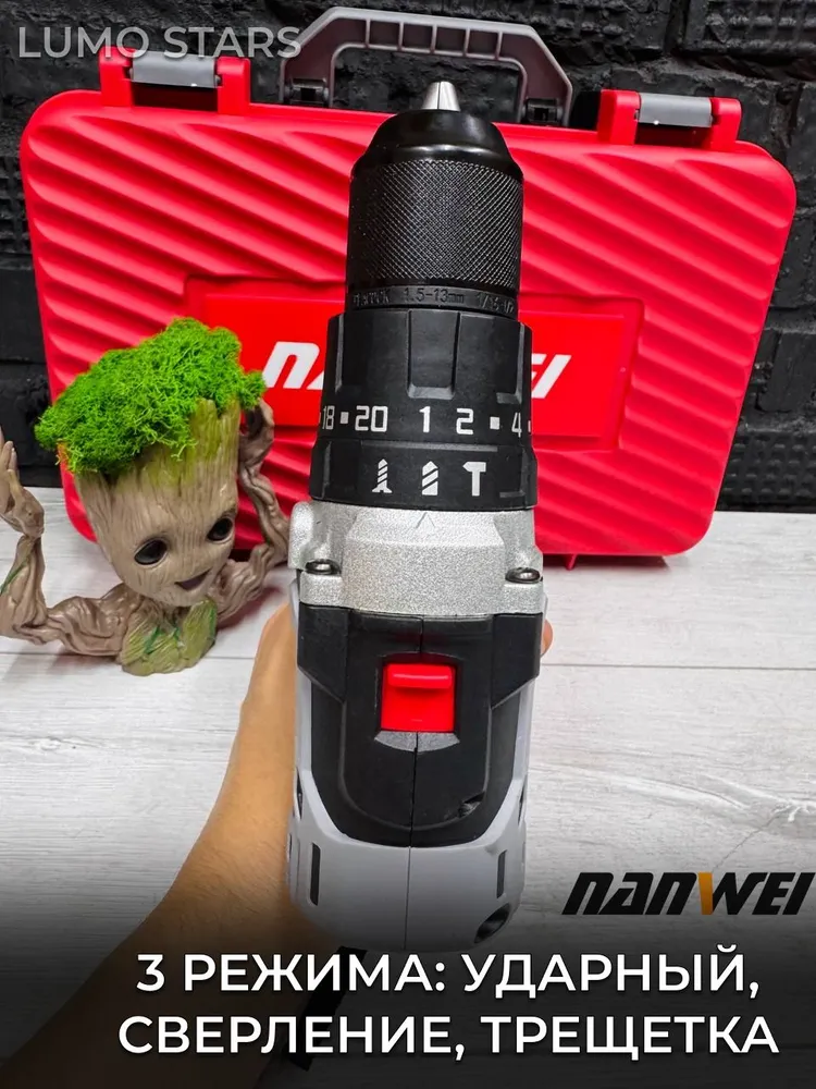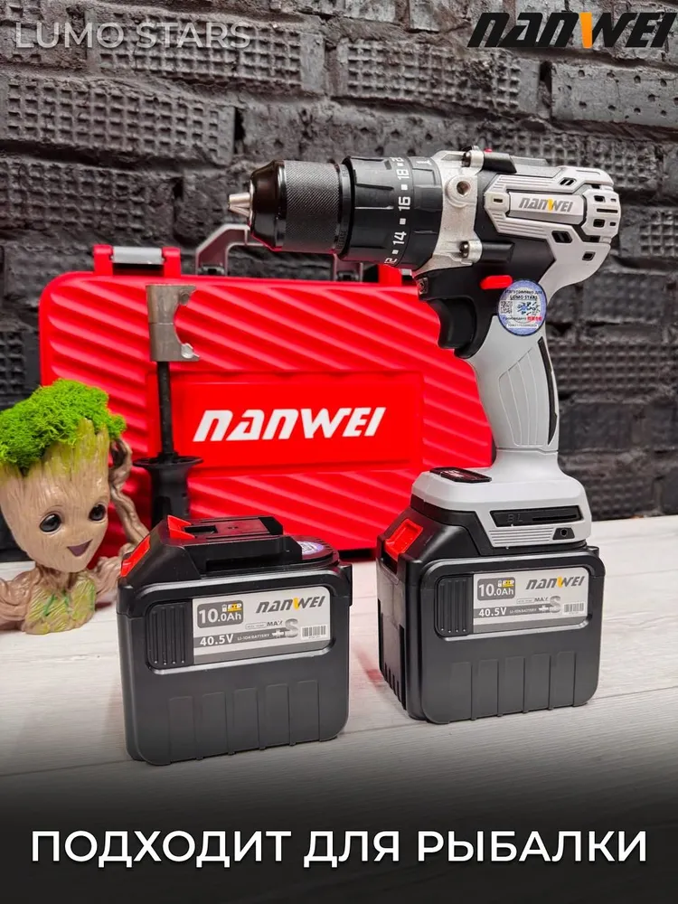 NANWEI Дрель-шуруповерт, 26 В, 200 Нм, 2 АКБ