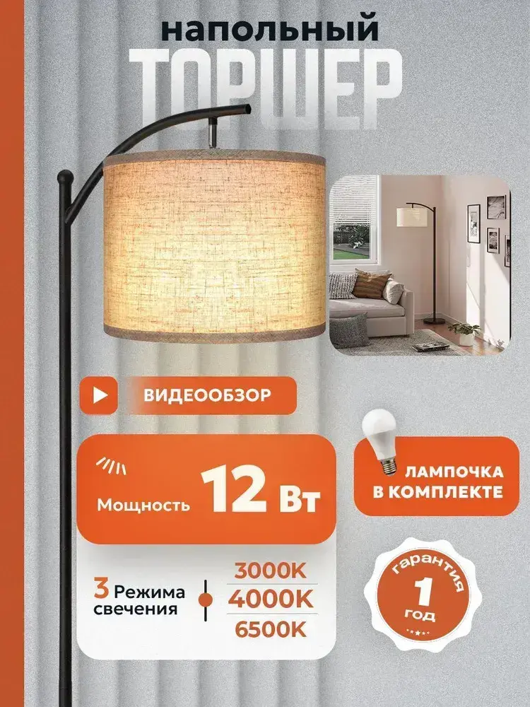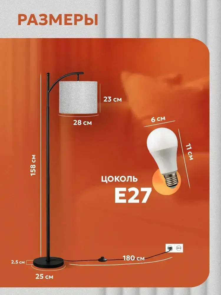 Напольный светильник / Торшер напольный c E27 лампочка, Maghome ,MNT101,торшер