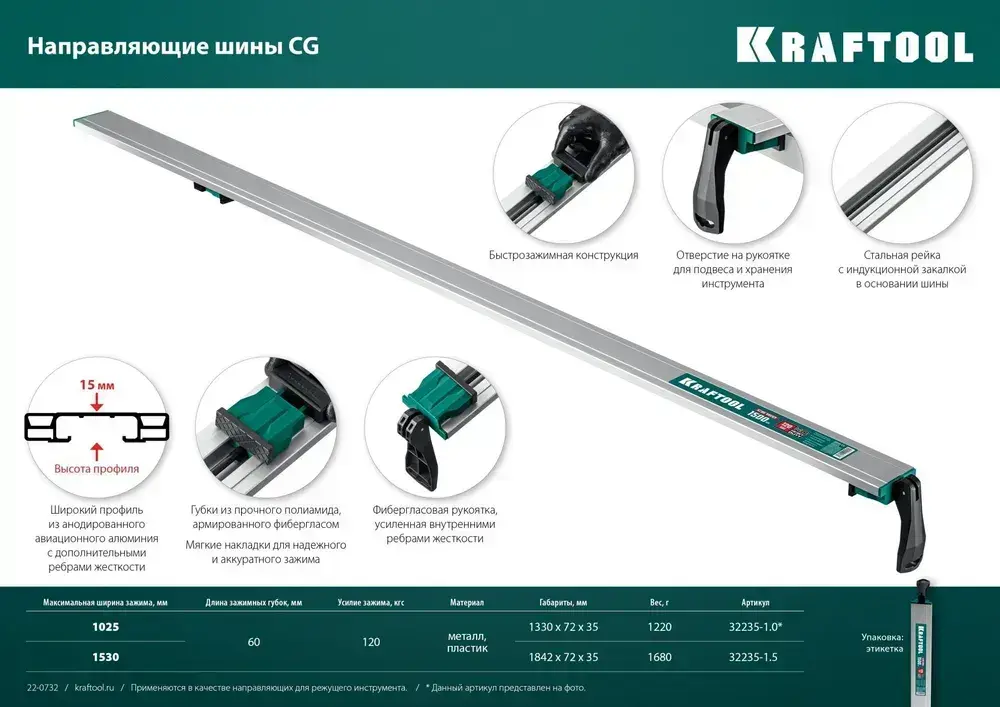 Направляющая шина KRAFTOOL CG-150, 1530 мм, зажимная (11709)