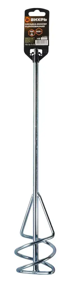 Насадка - миксер оцинкованная для краски, сухой смеси 400х80 мм под перфоратор SDS+ Вихрь