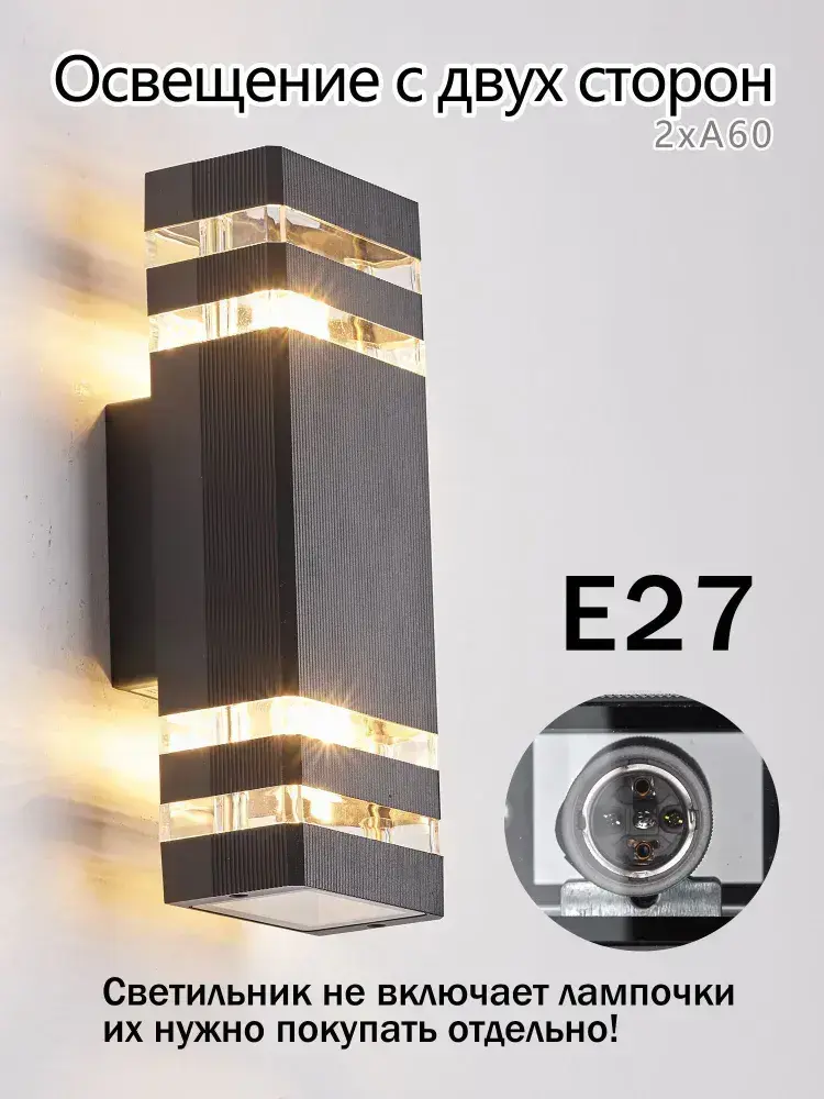 Настенный светильник фасадный уличный двухсторонний 2х60вт под лампу с цоколем Е27